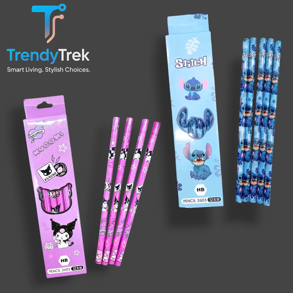 Make writing fun and stylish — grab your 12-piece cartoon HB pencil set today and bring Kuromi or Stitch to your school supplies!