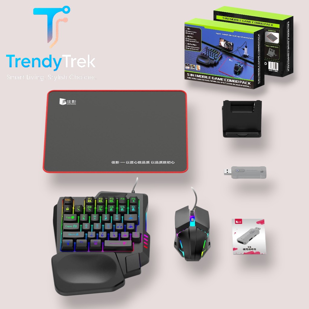 Take mobile gaming to the next level with this 5‑in‑1 Game Combo Pack. Including a mini RGB backlit keyboard, precision RGB gaming mouse, control converter, mobile phone holder, and mouse pad — everything you need for accurate, comfortable mobile gameplay.