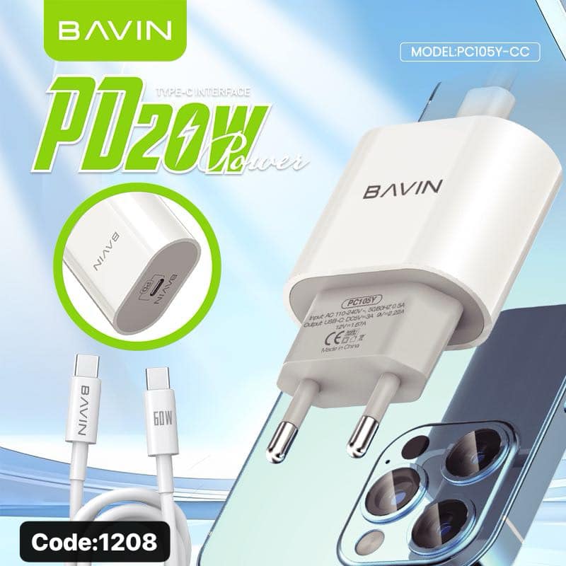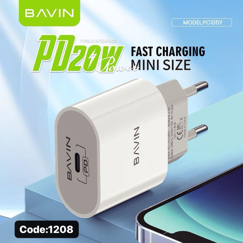 Stay powered on-the-go with the BAVIN PC105Y 20W PD Fast Charger — the ideal companion for fast and safe charging whether at home or while traveling. Featuring intelligent rectification technology, this charger provides up to 93% power conversion for optimized performance with minimal energy loss.
