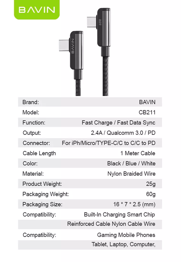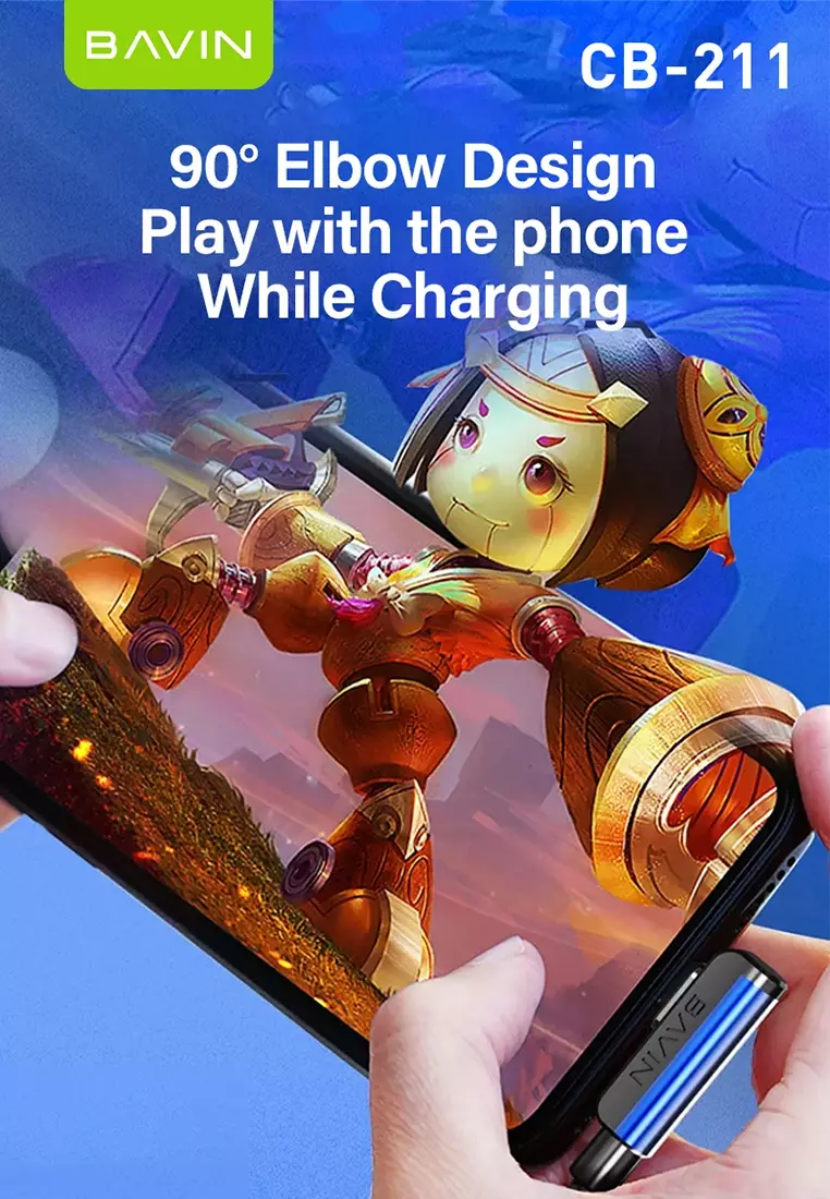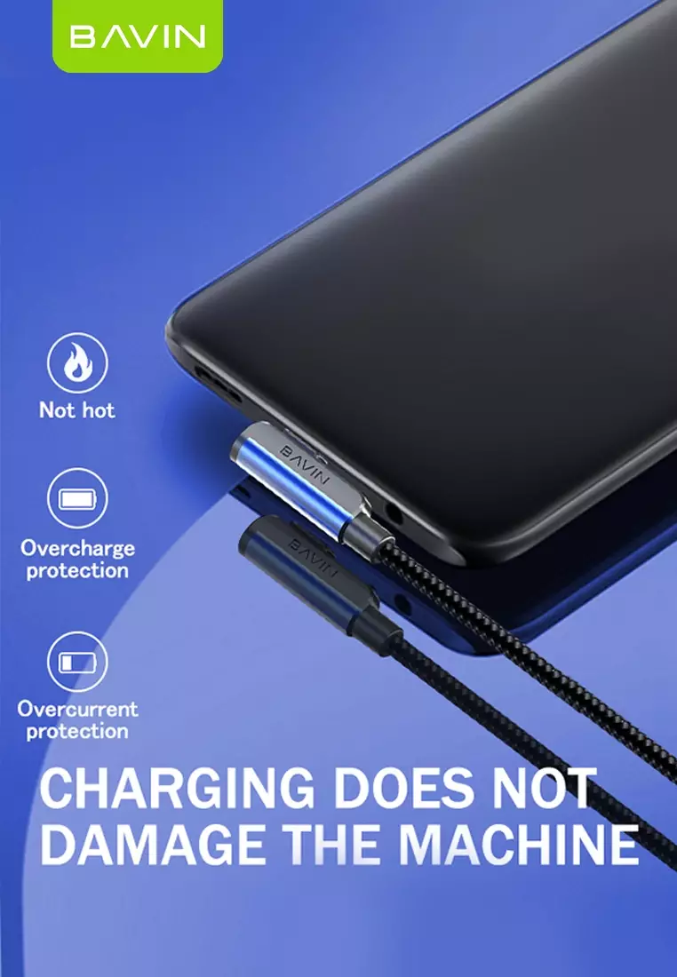 The Bavin CB211 90° Bend Gaming Data Cable is designed for gamers and heavy phone users who need uninterrupted comfort while charging. Its 90-degree angled connector keeps the cable out of your hands during play, preventing accidental disconnections and improving grip.
