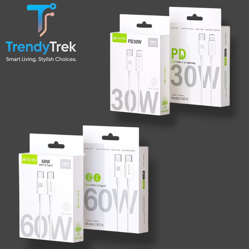Bavin Fast Charging Data Cable CB274 – 1 m (30 W USB-C → Lightning / 60 W USB-C → USB-C)