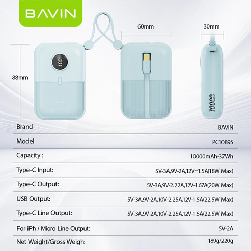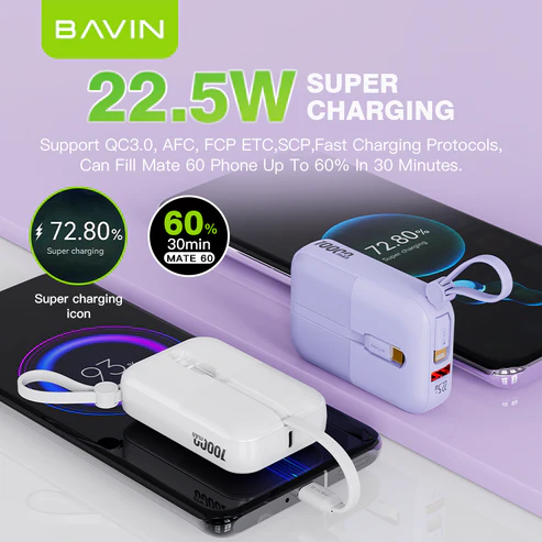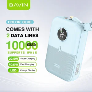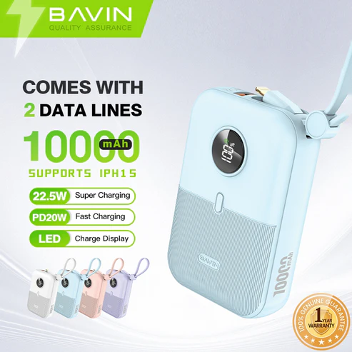 💡 Carry power wherever you go — the BAVIN PC1089S Mini Flash Powerbank delivers ultra-fast 22.5W charging in a compact design with built-in Lightning and Type-C cables, ready to recharge all your devices anytime.