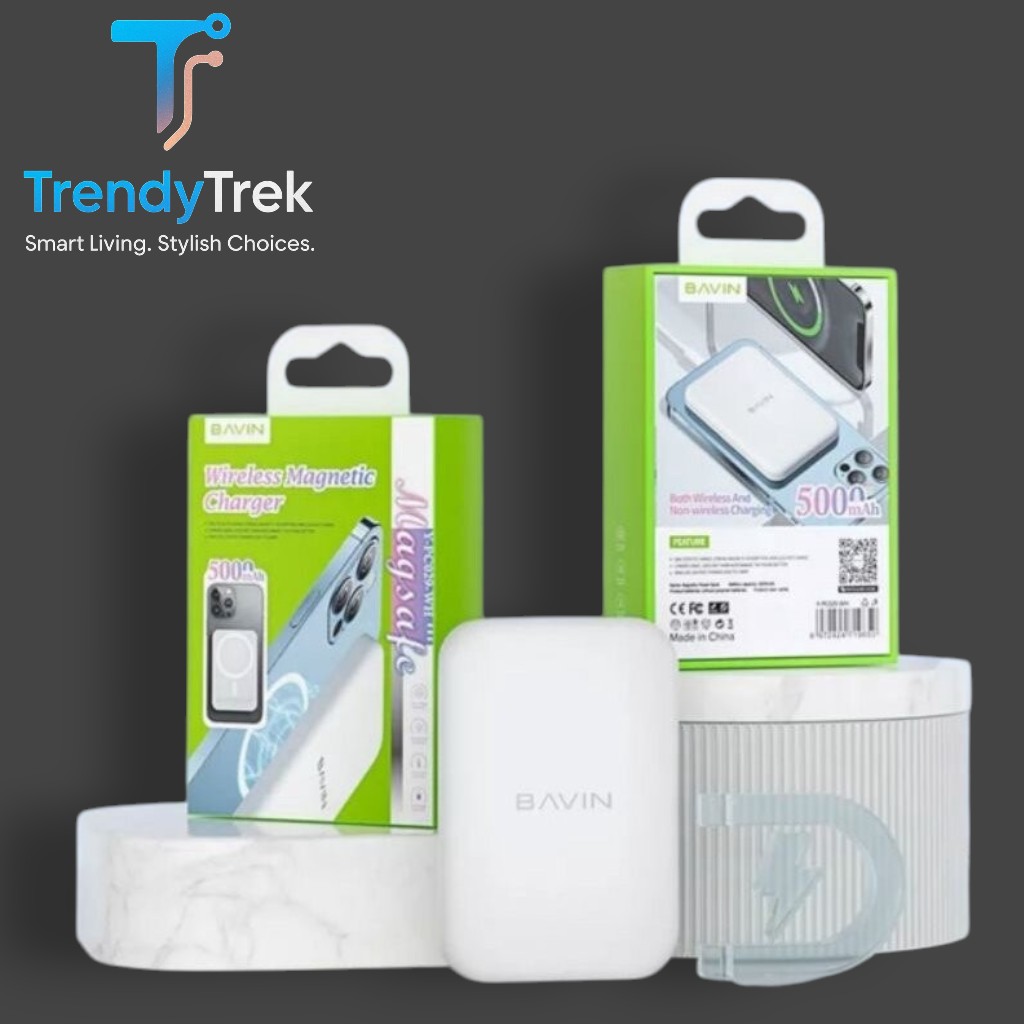 Stay powered up wherever you go with the Bavin Wireless Magnetic Charger (5000mAh) – your sleek and efficient charging companion. Designed for modern users, this charger supports both wireless and wired charging and features a strong magnetic hold for stable alignment with your device. Its compact design and elegant white finish make it perfect for travel or daily use.