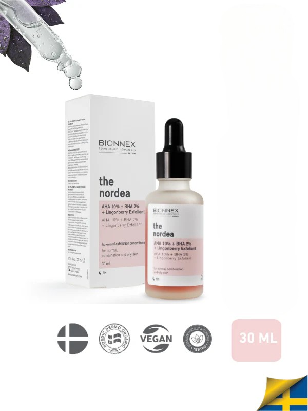 A leave-on chemical exfoliant that blends AHA 10% to smooth the skin’s surface with BHA 2% to clear inside the pores, boosted by lingonberry extract (rich in antioxidants) for a brighter, more even look. Regular use helps reduce rough texture, the look of enlarged pores and stubborn dullness, revealing a fresher, refined complexion. The lightweight fluid spreads easily, absorbs without stickiness, and layers well under a simple moisturizer. Especially suited to normal, combination, and oily skin; beginners can start slowly and increase frequency as skin builds tolerance.