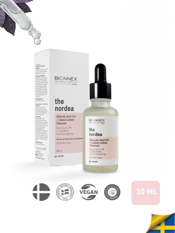 A targeted anti-blemish treatment that pairs 2% Salicylic Acid (BHA) with Island Lichen—a Nordic botanical known for its clarifying, soothing properties—to help decongest pores, reduce breakouts, and balance excess oil. While salicylic acid exfoliates inside the pore to clear congestion and smooth rough texture, Island Lichen supports the skin’s natural defenses and helps calm visible redness. The lightweight, fast-absorbing serum-cleanser texture spreads easily, leaves no sticky residue, and suits all skin types, especially oily and acne-prone skin seeking daily clarity.