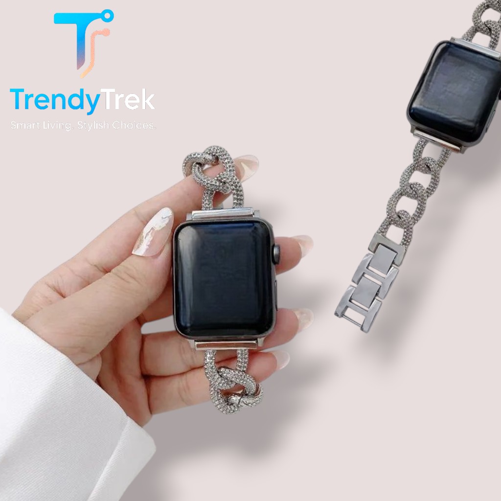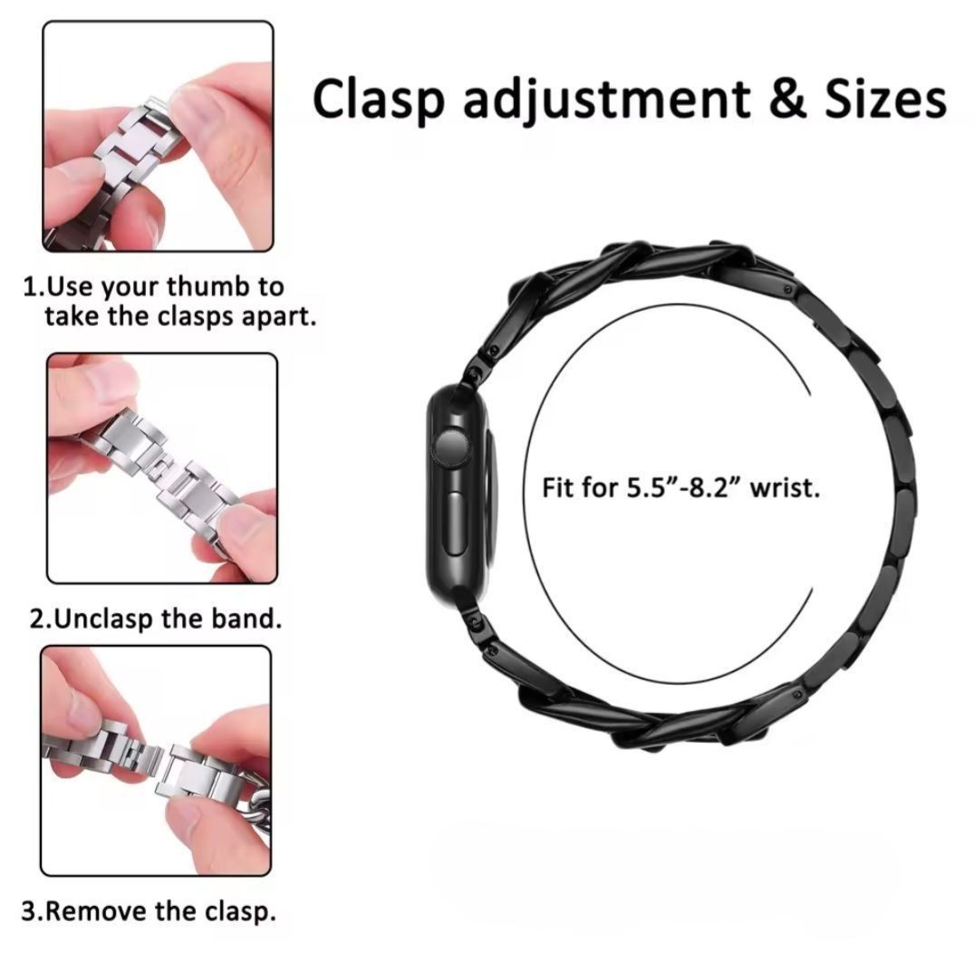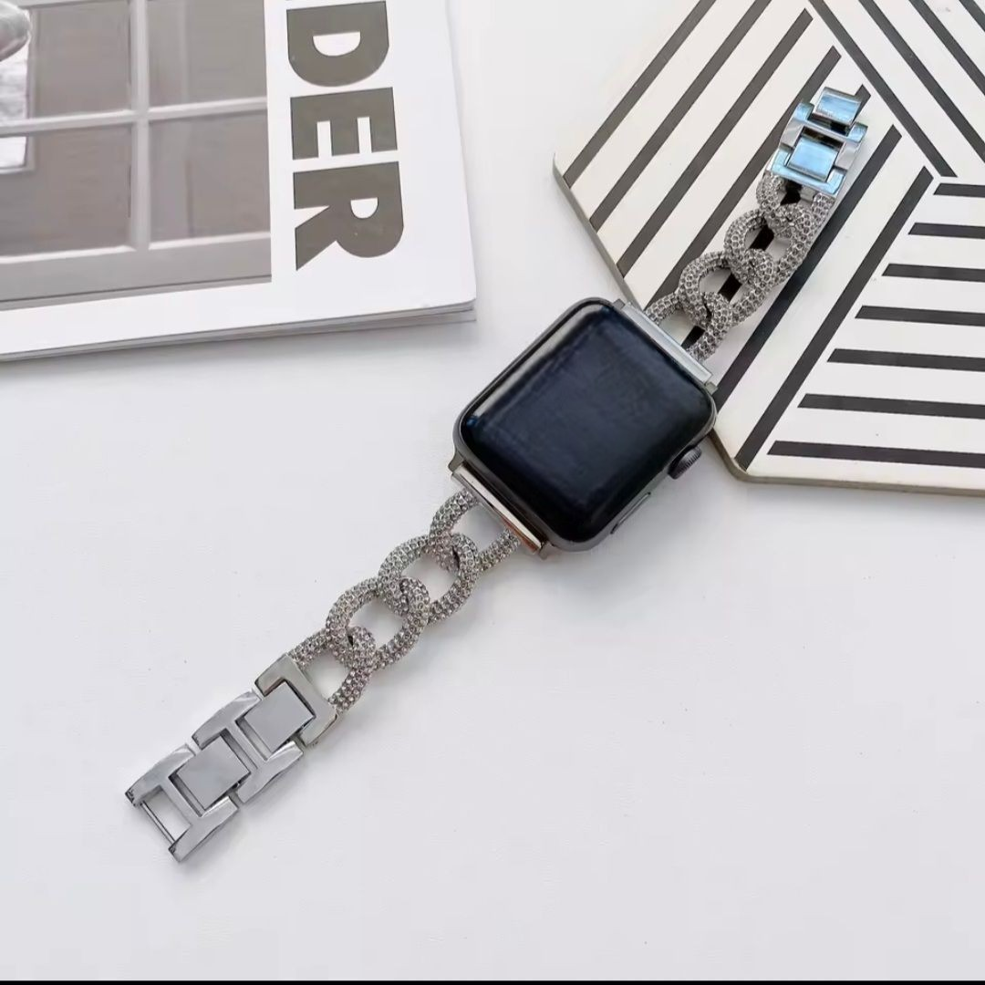 The elegant chain-link design adds sophistication, while the sturdy connectors ensure a secure fit for your Apple Watch. The strap is comfortable for daily wear, making it the perfect accessory for both casual outings and formal occasions.