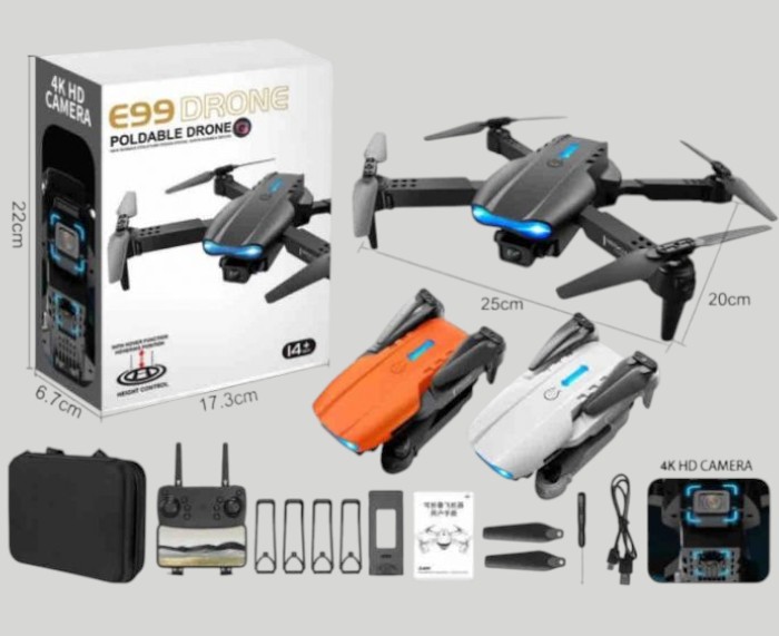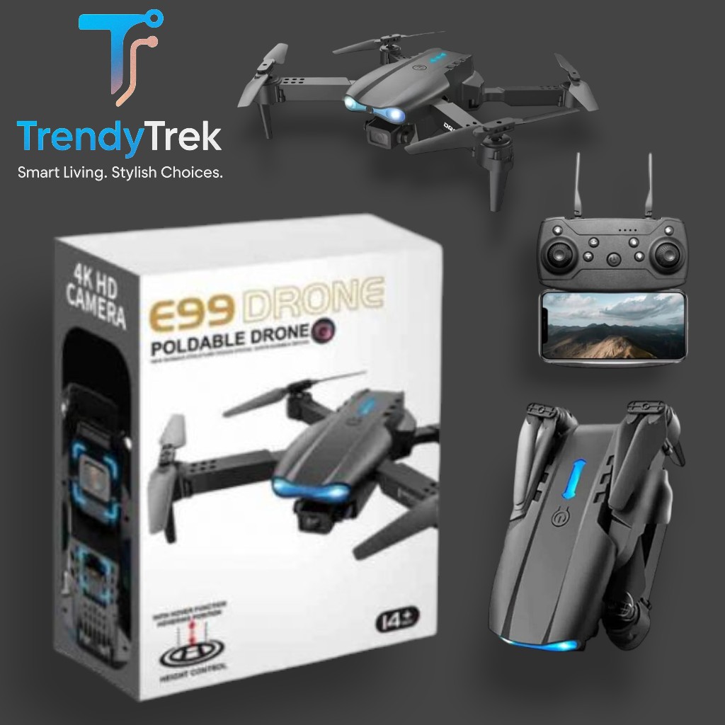 The E99 Foldable Drone combines portability, performance, and innovation in one compact design. With its lightweight foldable structure and 4K HD camera, it captures crisp photos and videos from the sky while offering easy control through a mobile app or remote controller. Perfect for aerial photography and learning flight control with fun features like 360° roll, altitude hold, and headless mode.