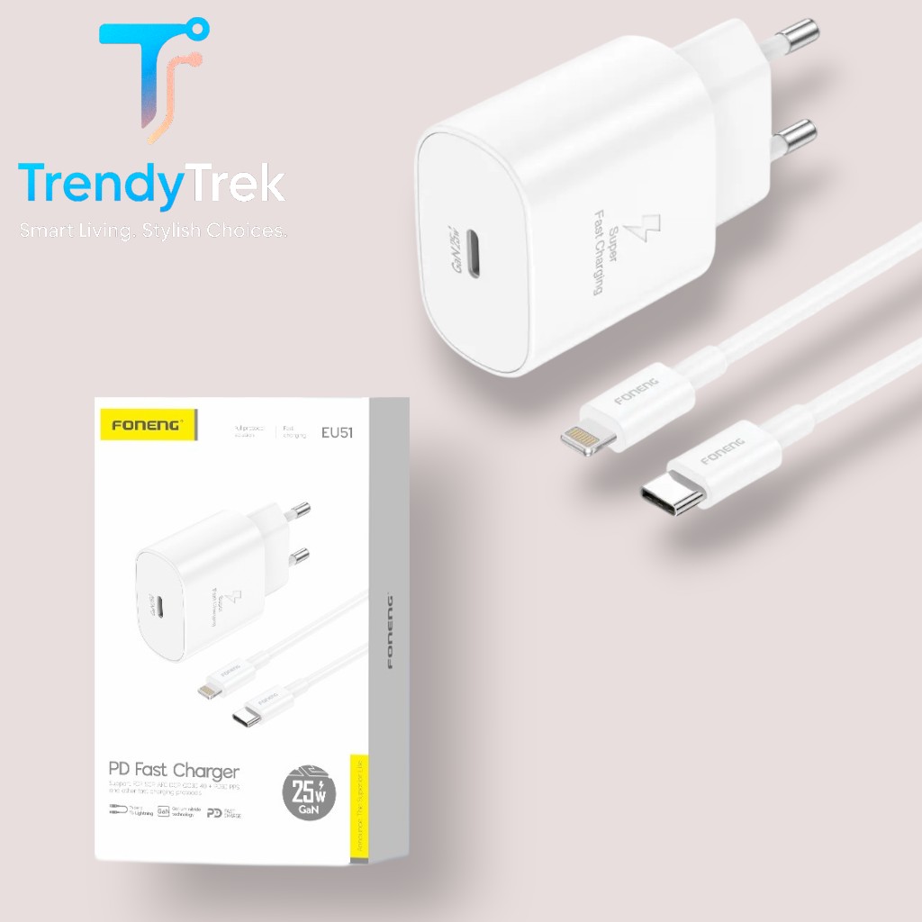 Experience next-level charging efficiency with the Foneng EU51 25W GaN PD Fast Charger. Built with Gallium Nitride (GaN) technology, this compact and lightweight charger delivers exceptional power with minimal heat, ensuring your devices charge faster and more safely.