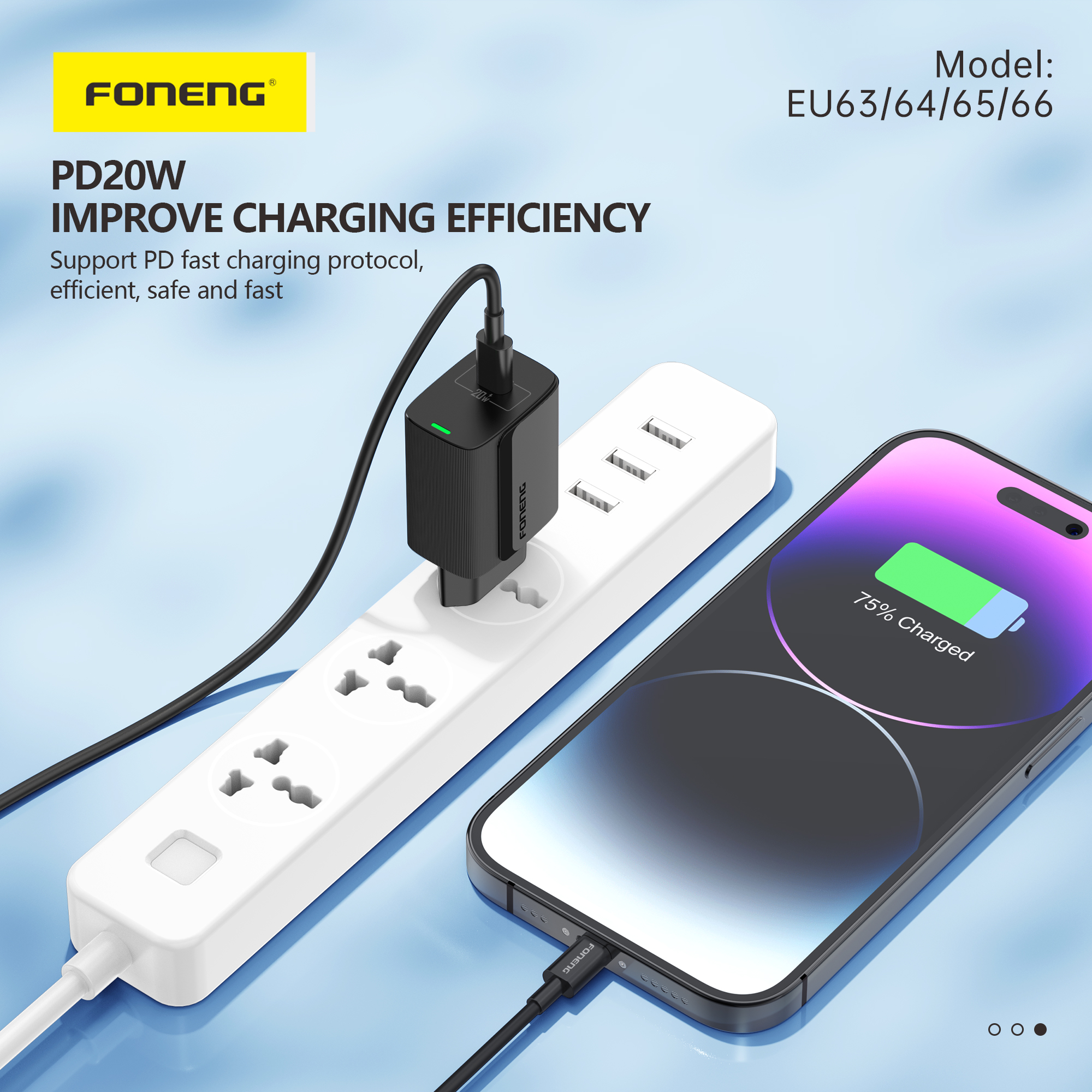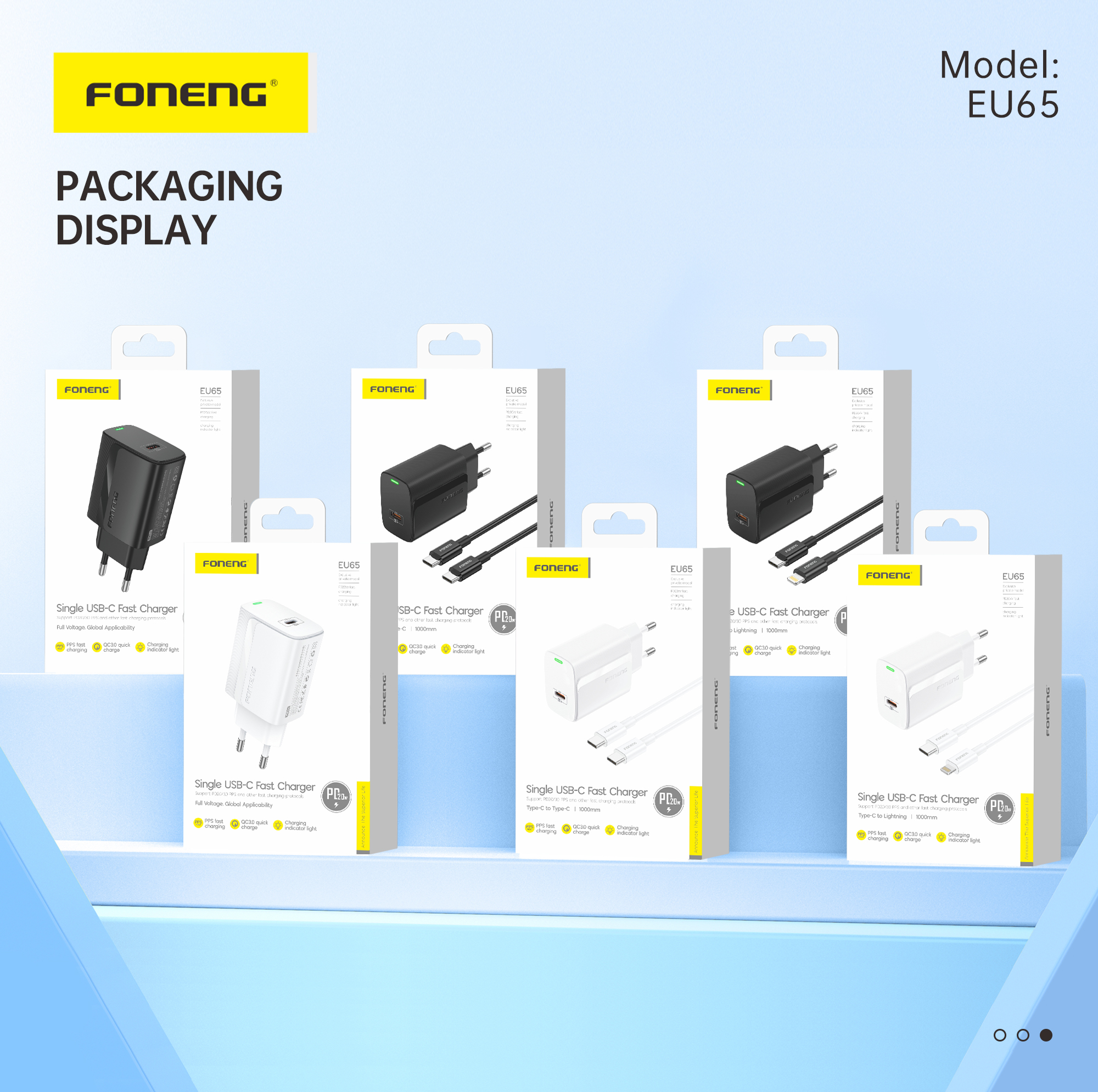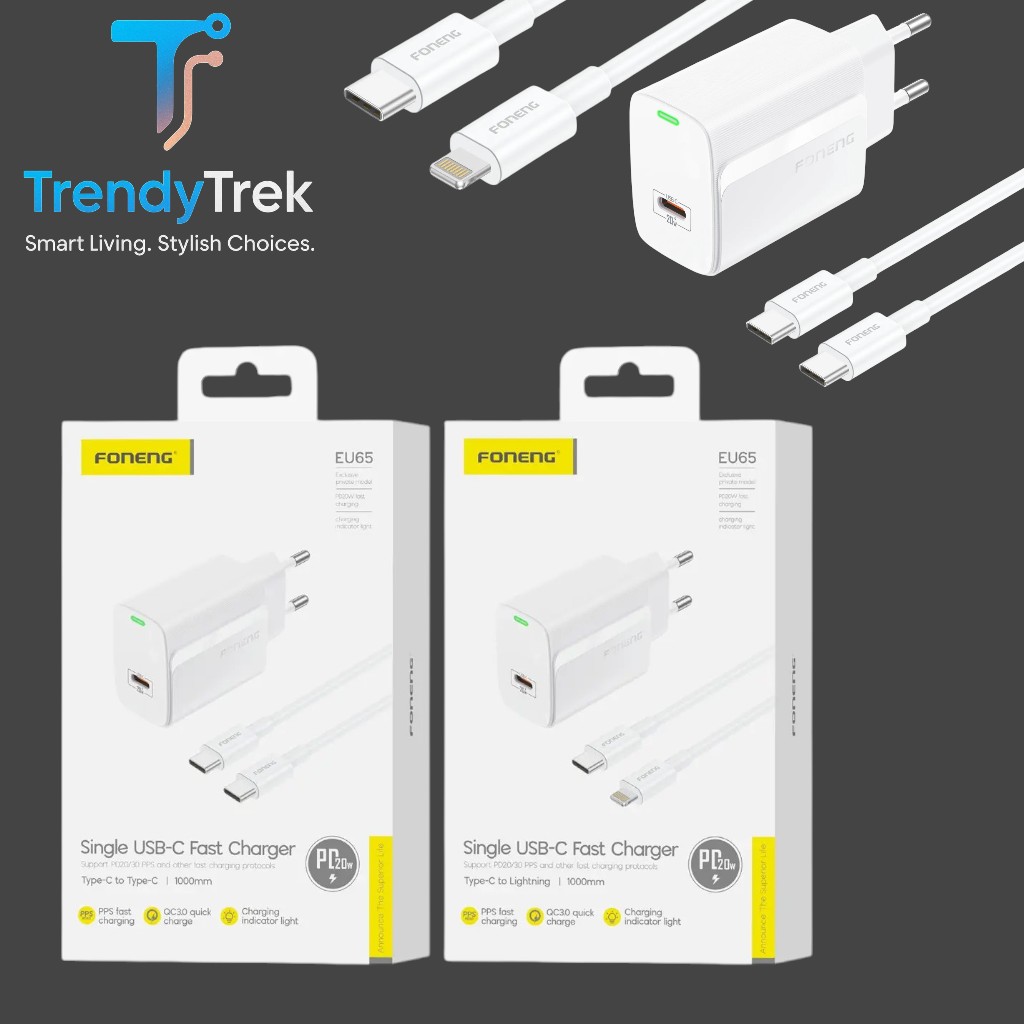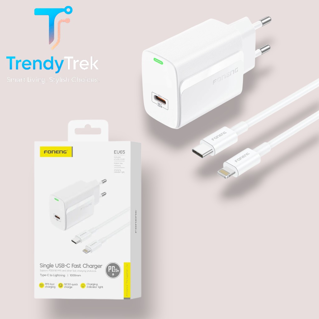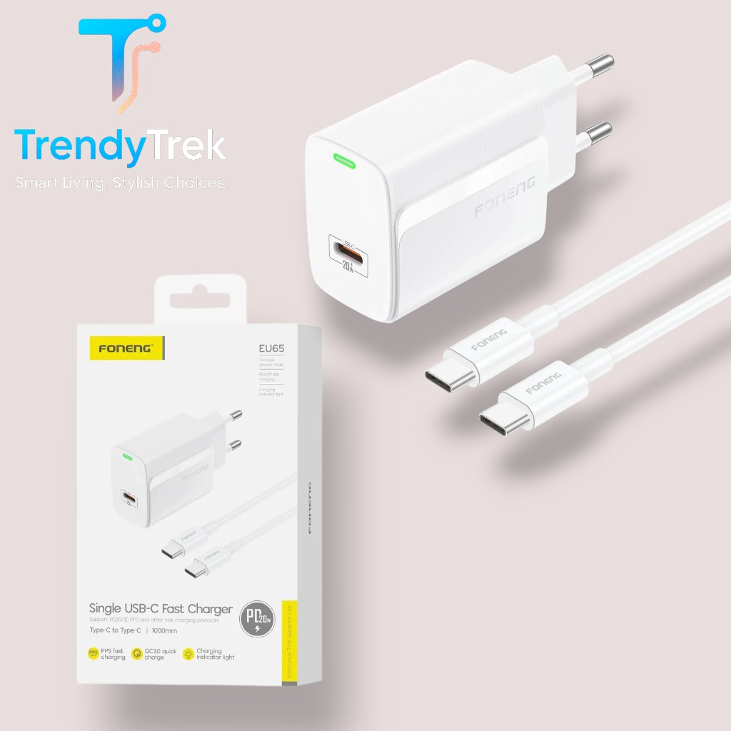 The Foneng EU65 is a compact and efficient 20W PD fast charger designed to deliver safe, stable, and high-speed charging for your devices. Featuring PPS fast charging and QC3.0 quick charge support, it ensures compatibility with a wide range of smartphones and tablets.