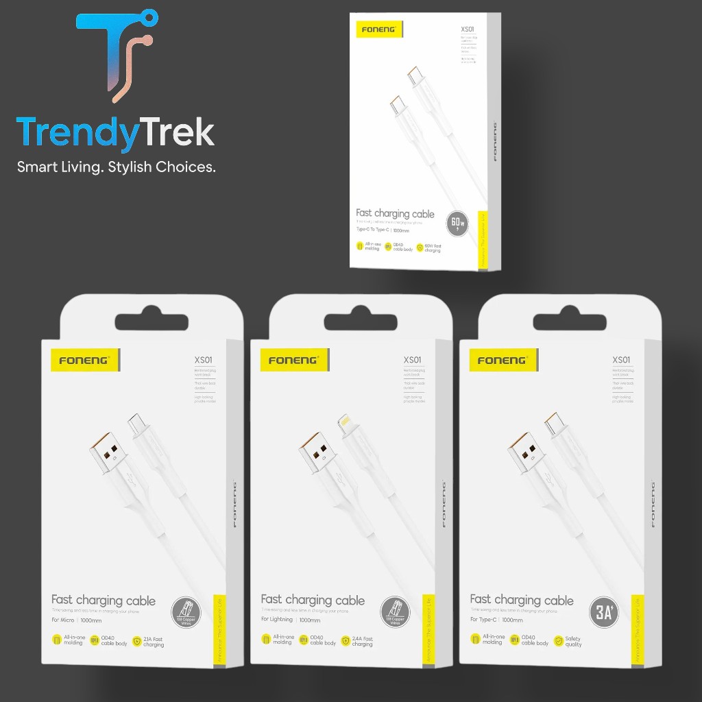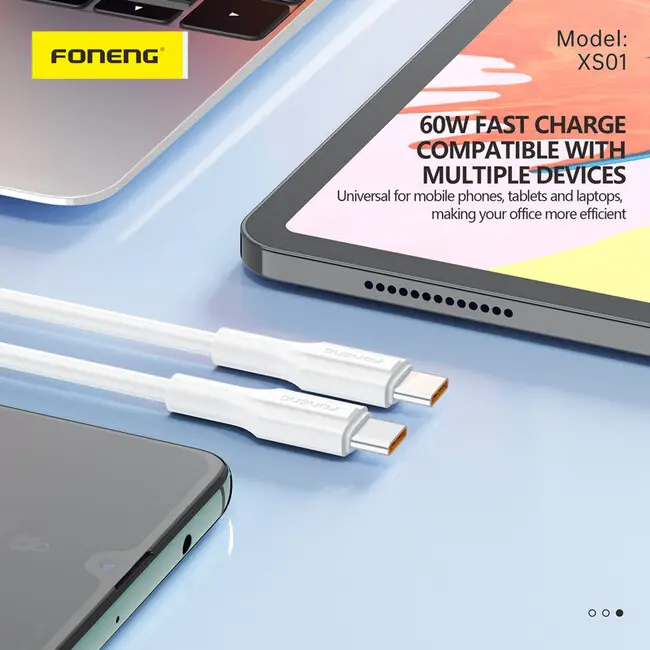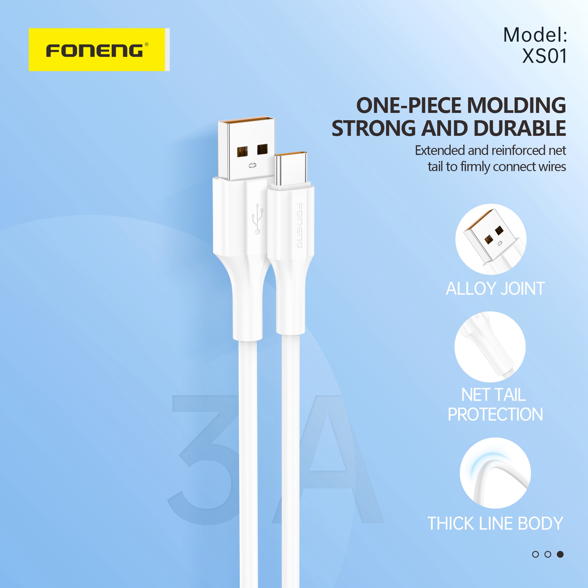 The Foneng XS01 Fast Charging Cable is built for versatility, speed, and durability. Featuring a reinforced plug design and a thick OD4.0 cable body, it delivers stable charging and rapid data transfer while resisting wear and tear. The elastic, bouncy outer material prevents tangling and improves flexibility, making it perfect for everyday use at home, in the office, or on the go.