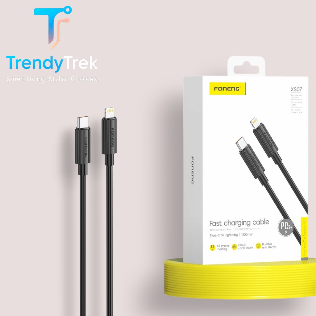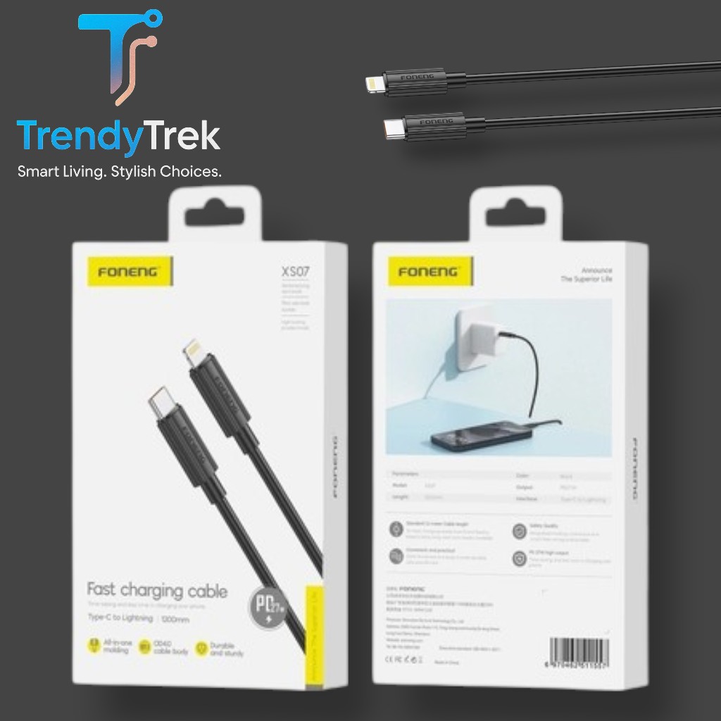 The Foneng XS07 27W PD Fast Charging Cable is designed for speed, durability, and safety, ensuring your Apple devices get powered up quickly and reliably. With a robust OD4.0 thick cable body and reinforced connectors, this cable withstands daily wear while maintaining high performance. Its Type-C to Lightning interface is optimized for Power Delivery charging, making it the perfect partner for PD wall chargers.