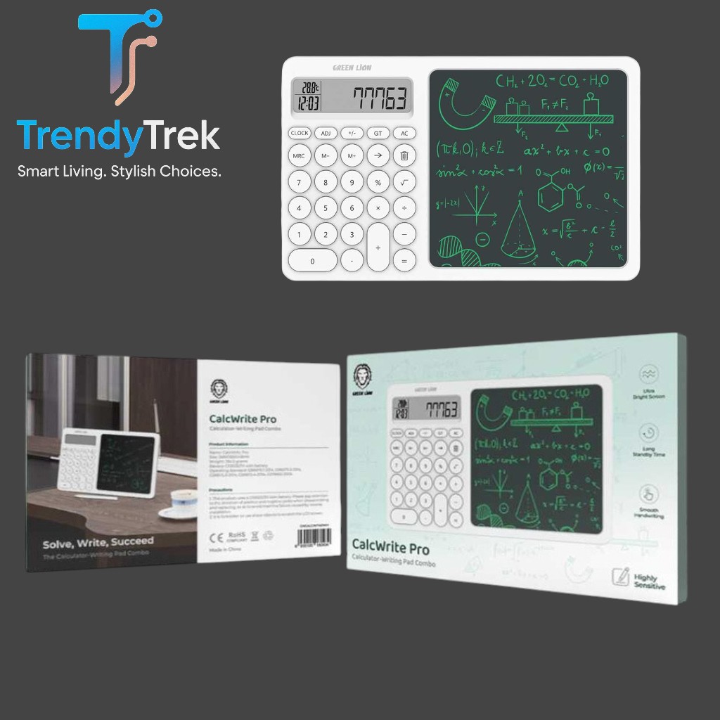 The Green Lion CalcWrite Pro is an innovative 2-in-1 device combining a high-quality calculator with a smooth LCD writing pad, designed for professionals, students, and anyone who values efficiency and creativity.
