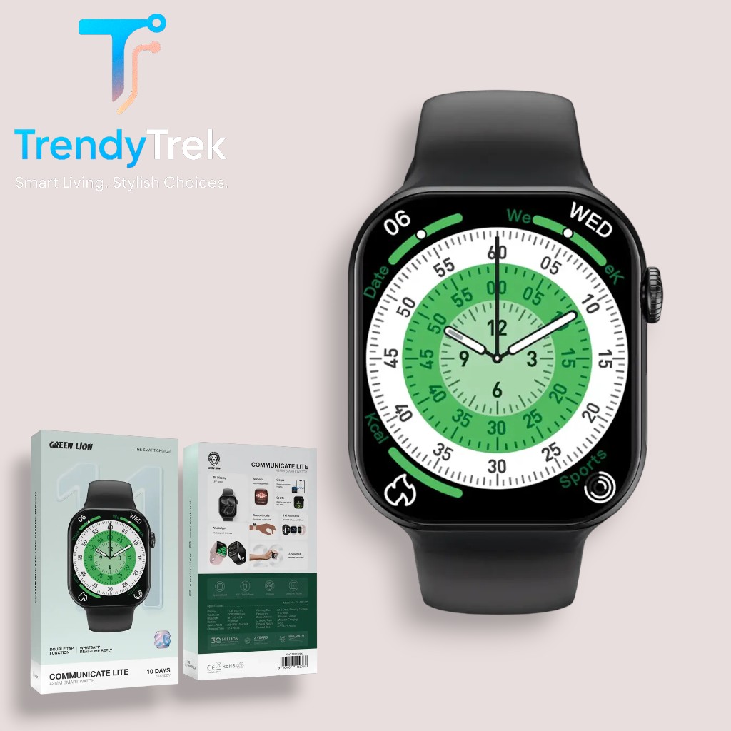 The Green Lion Communicate Lite 42mm Smart Watch delivers a refined balance of performance, comfort, and smart functionality in a compact and elegant design. Featuring a 1.85-inch IPS display with a crisp 320×380 resolution, it ensures clear visuals for notifications, apps, and daily interactions.
