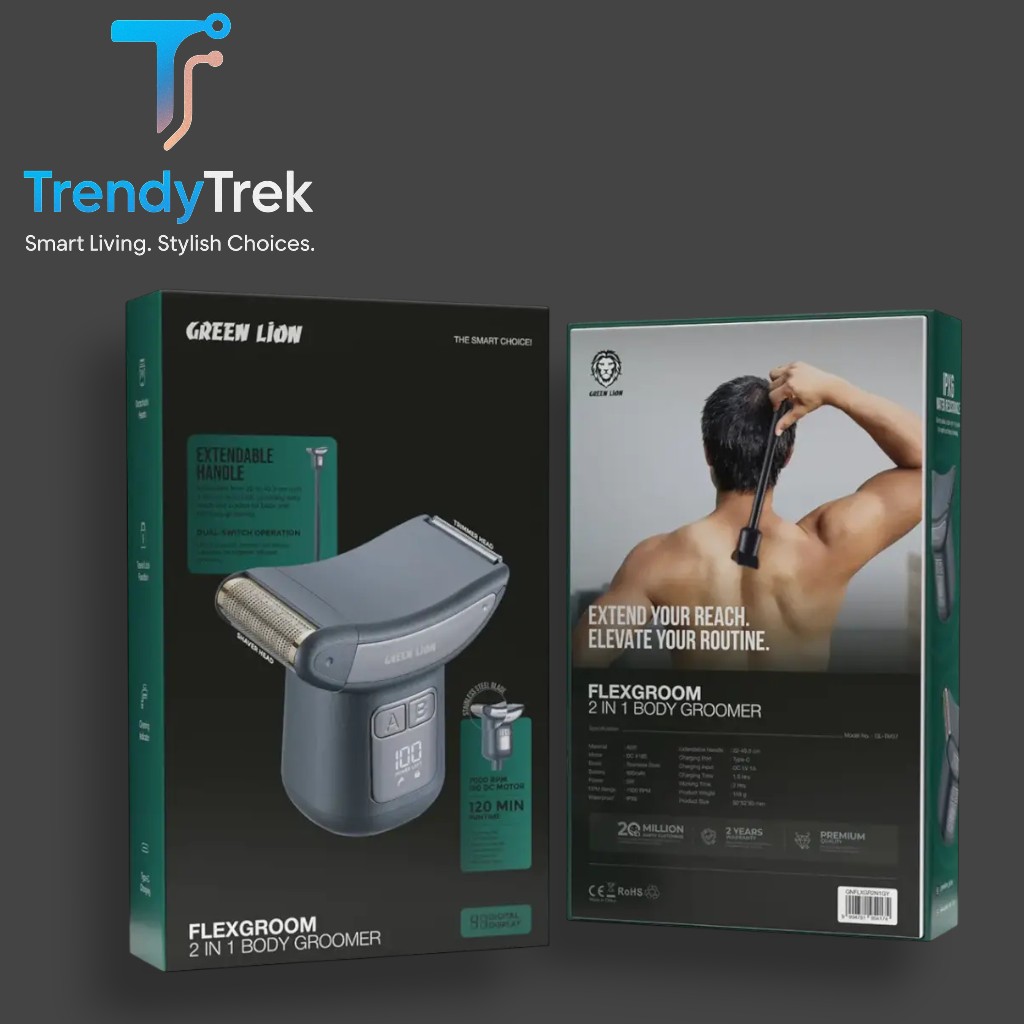 The Green Lion Flexgroom is designed for total convenience—one device that handles every grooming need, from quick touch-ups to full grooming sessions. Its extendable handle, waterproof body, and long battery life make grooming easier, safer, and more comfortable than ever, giving you a clean, confident look anytime you need it.