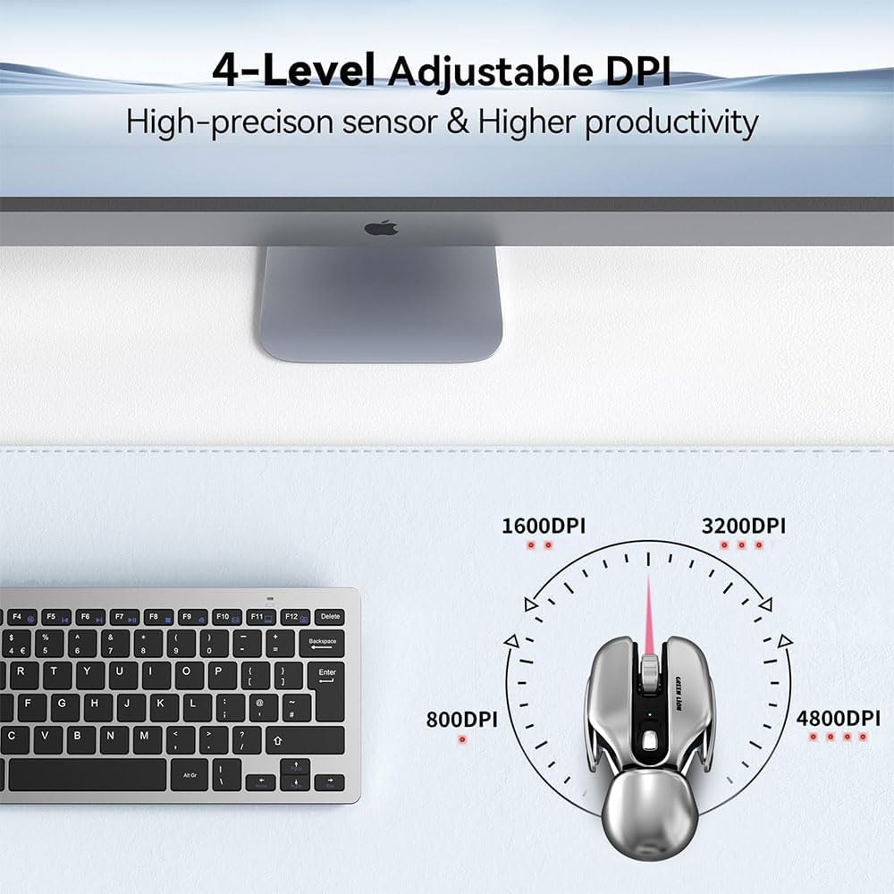 Its metallic gray finish and ergonomic contour provide comfort during long sessions, while its adjustable DPI levels (800–4800) allow smooth transitions between everyday work and high-speed gaming precision.