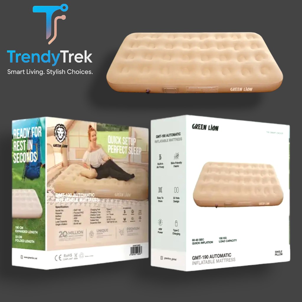 The Green Lion GMT-190 Automatic Inflatable Mattress is designed to deliver reliable comfort wherever you need it — whether you’re camping outdoors, traveling, or setting up a temporary bed at home for guests. With its built-in automatic air pump and compact folding design, it offers a smart, space-saving sleeping solution for both indoor and outdoor use.