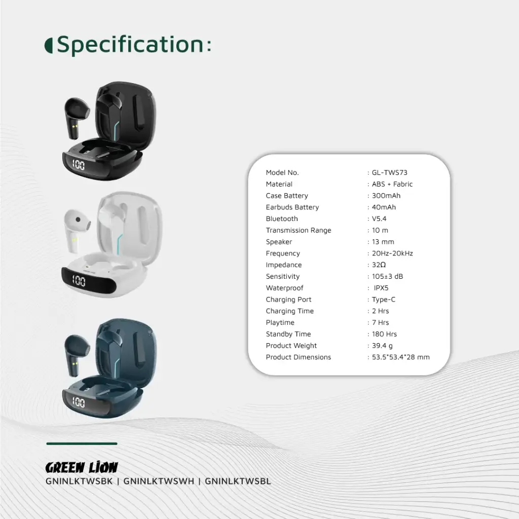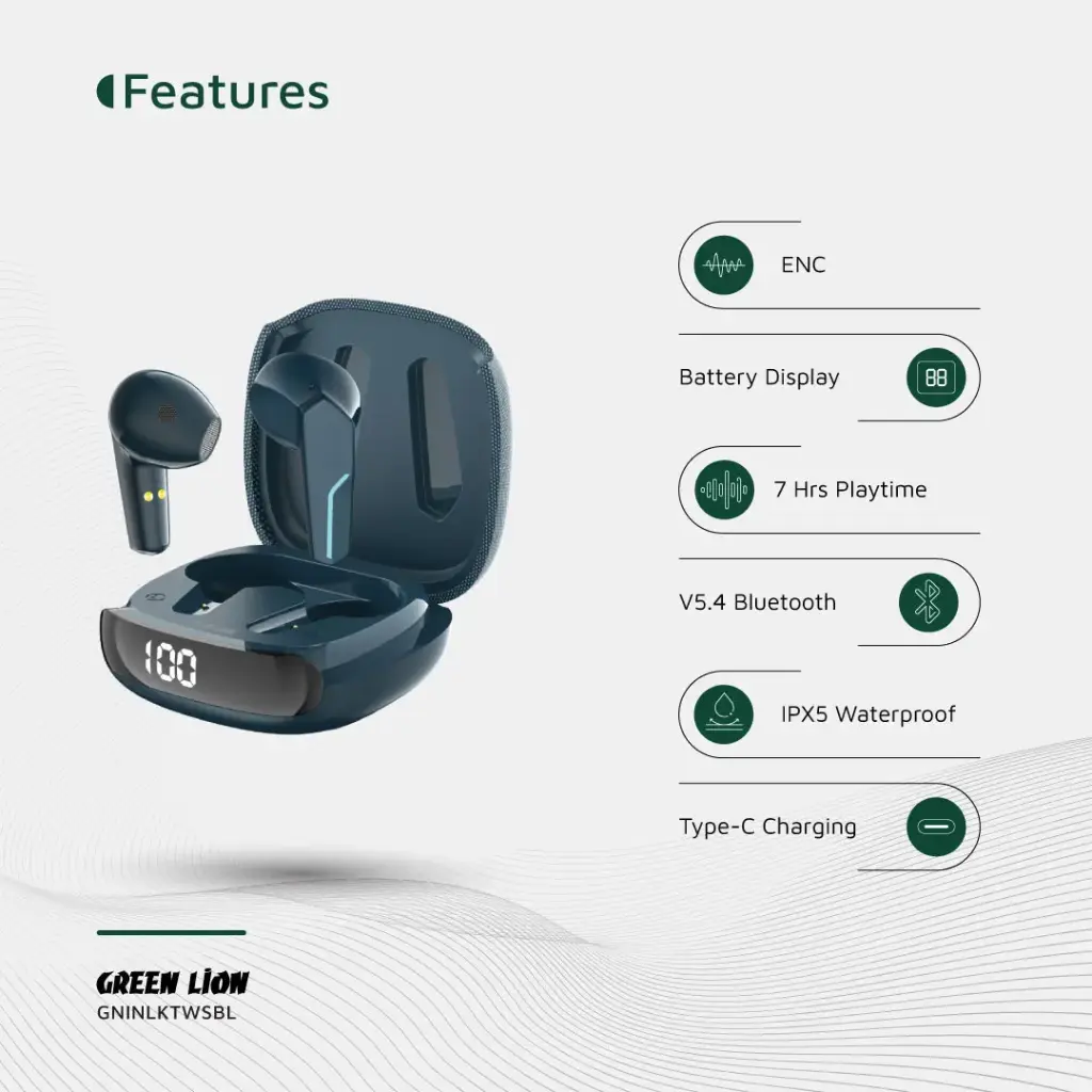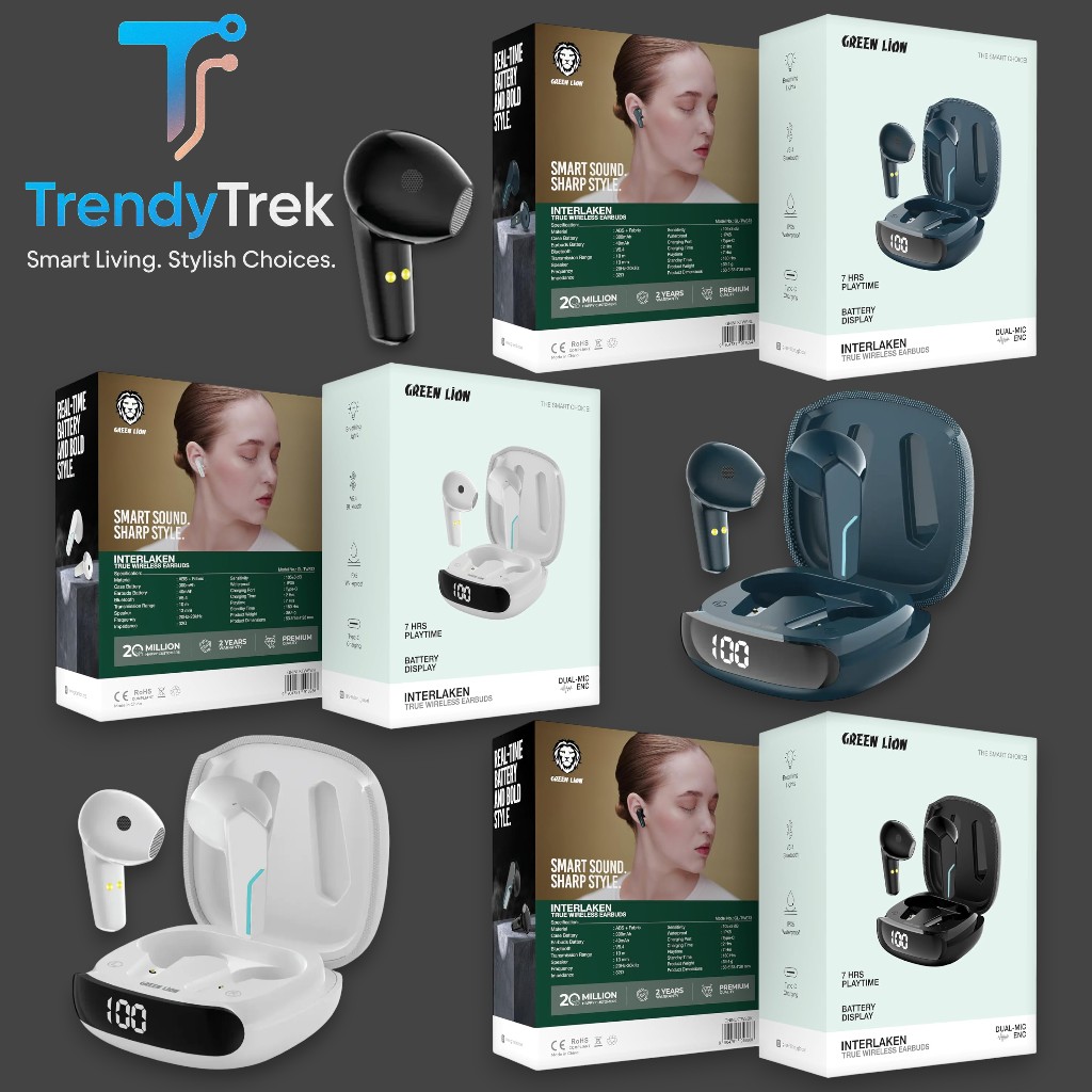 Fast Type-C charging ensures quick power-ups, while the digital battery display keeps you informed of remaining power at a glance. Whether commuting, training, or relaxing, the Green Lion Interlaken earbuds combine performance, durability, and standout design in one premium package.