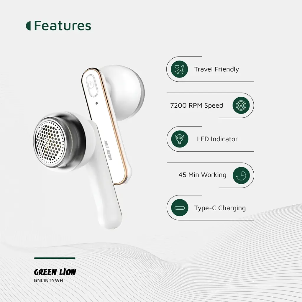 The Green Lion Lint Y Lint Remover is a powerful and compact fabric care tool designed to instantly remove lint, fuzz, and fabric pills from clothes, upholstery, and more. Built with a durable ABS body and powered by a high-speed 7200 RPM motor, it delivers efficient and smooth performance on all types of fabrics.