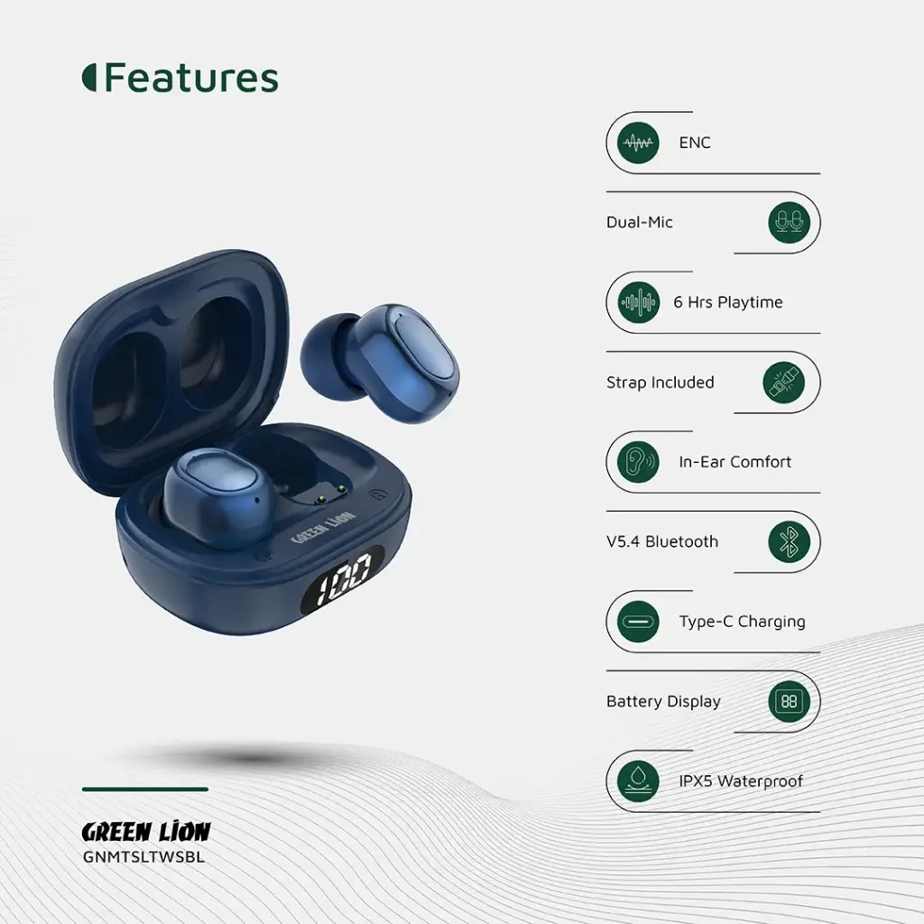 Whether you’re working out, commuting, or taking calls on the go, the Green Lion Mittersill True Wireless Earbuds give you reliable connectivity, clear sound, and everyday comfort in a sleek, portable design—making them an essential upgrade for your daily audio needs.