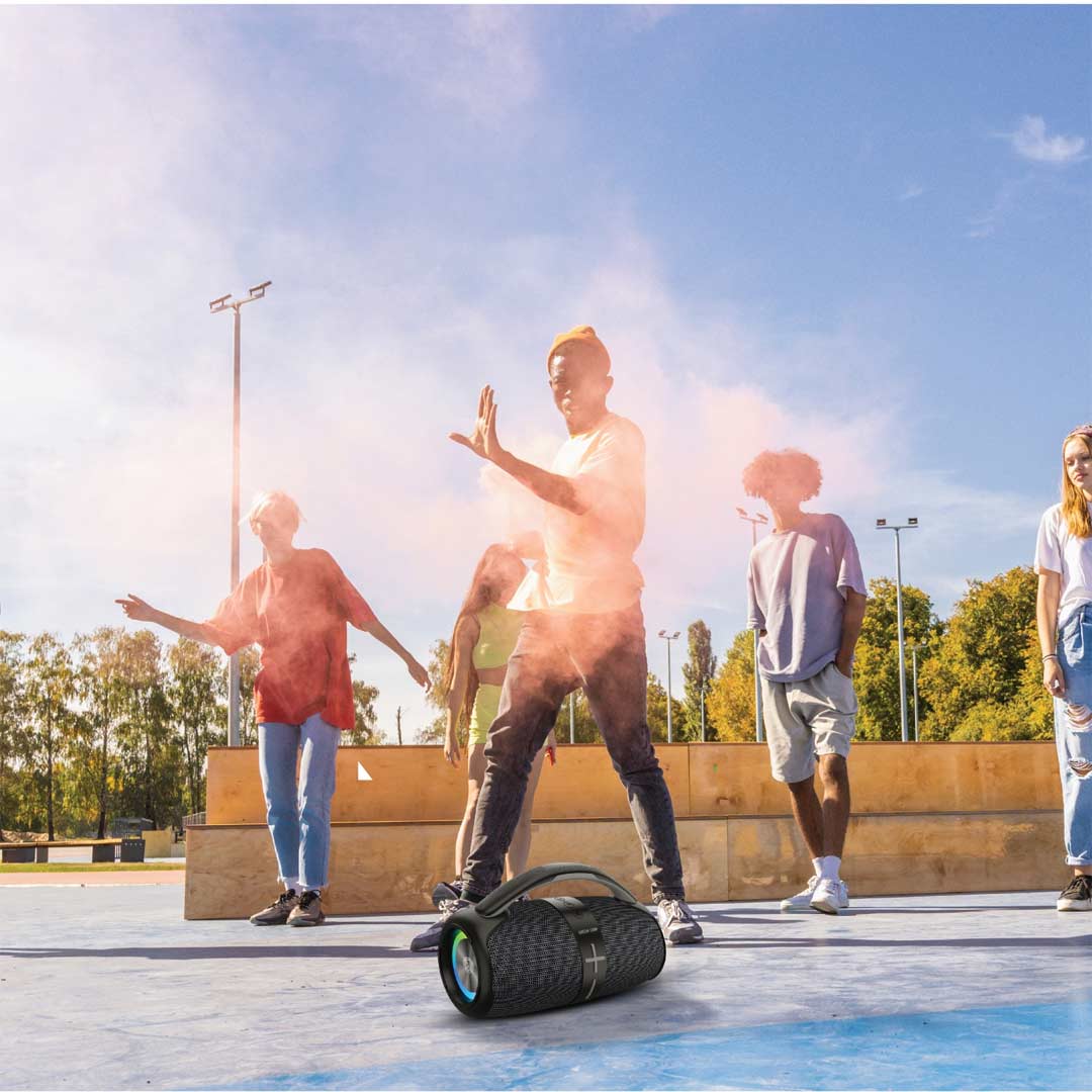 With IPX6 waterproof protection, the Parma Pro is built to handle splashes, poolside fun, and outdoor adventures. The RGB lighting effects add a vibrant atmosphere to your music experience, while the 4000mAh rechargeable battery provides up to 7 hours of playtime.