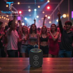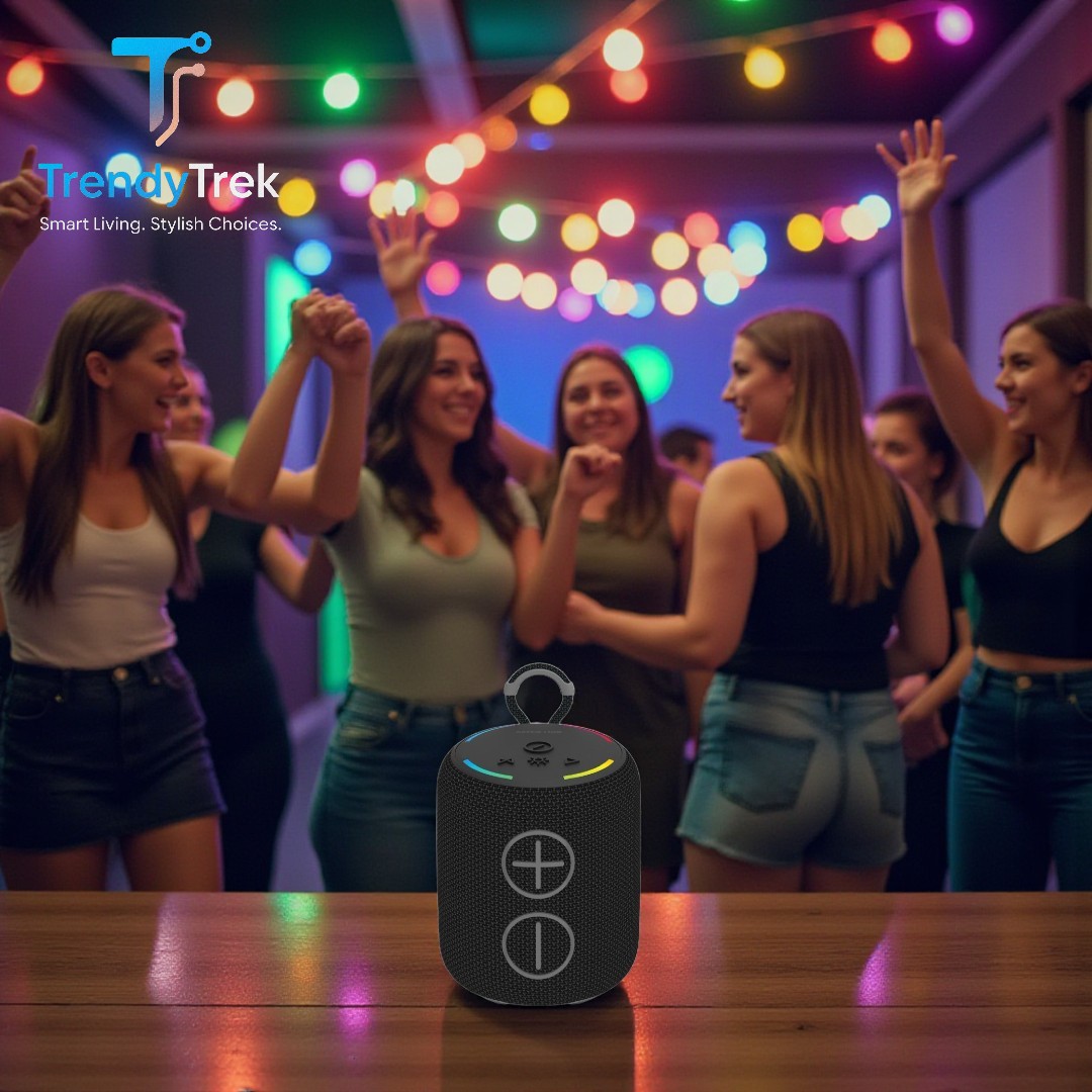 The IPX6 waterproof rating lets you enjoy music anywhere — whether at the beach, outdoors, or by the pool. The built-in RGB ambient lighting adds a vibrant touch to your setup, creating a mini party atmosphere.