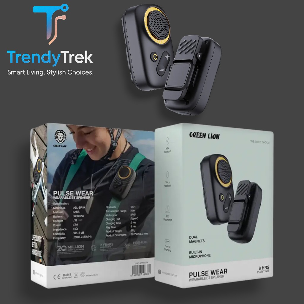 💡 Go hands-free and stay connected anywhere — the Green Lion Pulse Wear Speaker combines comfort, clarity, and durability, making it your perfect on-the-go audio companion.