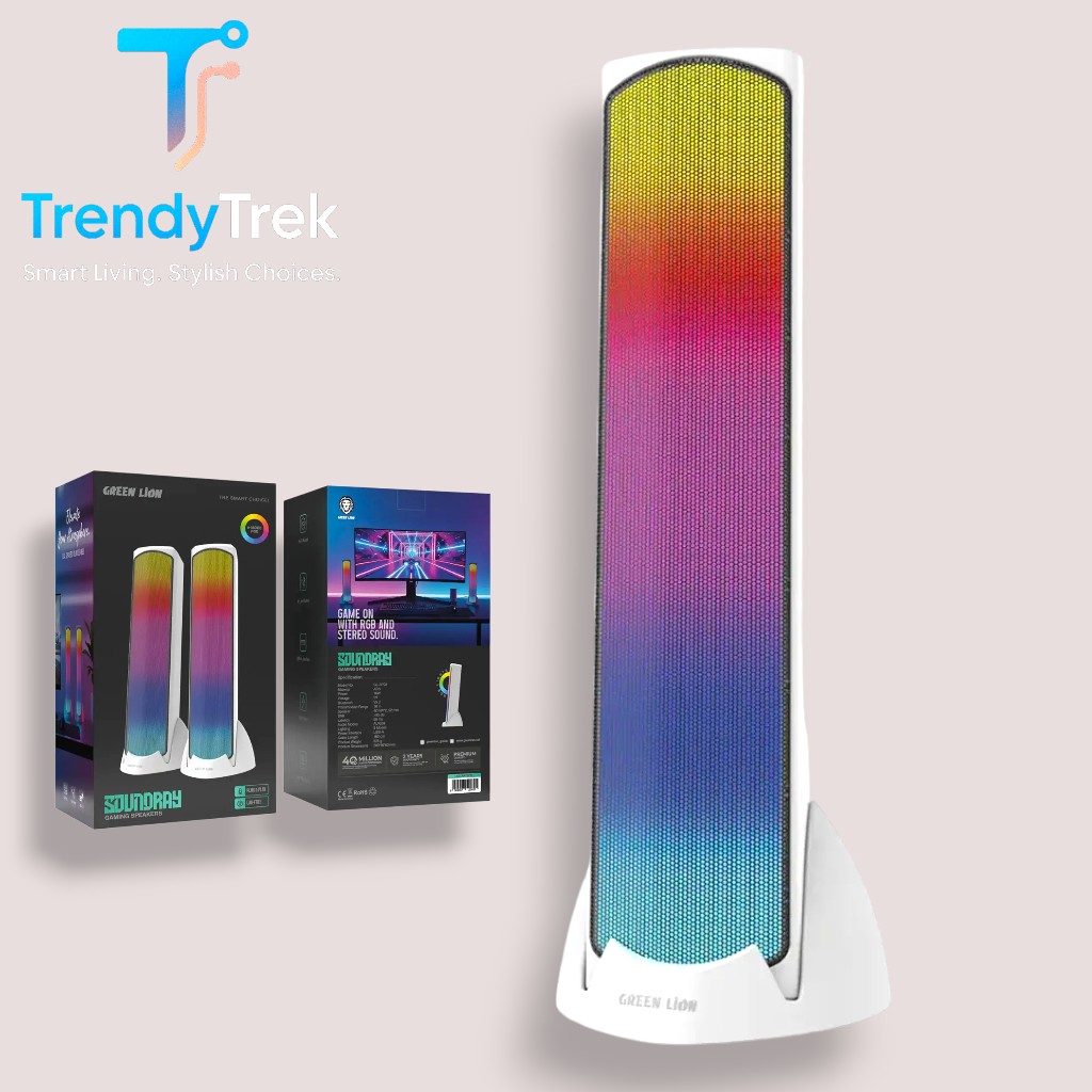 The Green Lion Soundray Gaming Speakers are built to enhance your gaming and entertainment experience with powerful stereo sound and vibrant RGB lighting. Delivering 10W output (5W ×2 drivers) with clear Hi-Fi audio and a signal-to-noise ratio above 85dB, these speakers provide balanced sound performance for gaming, streaming, and everyday media playback.