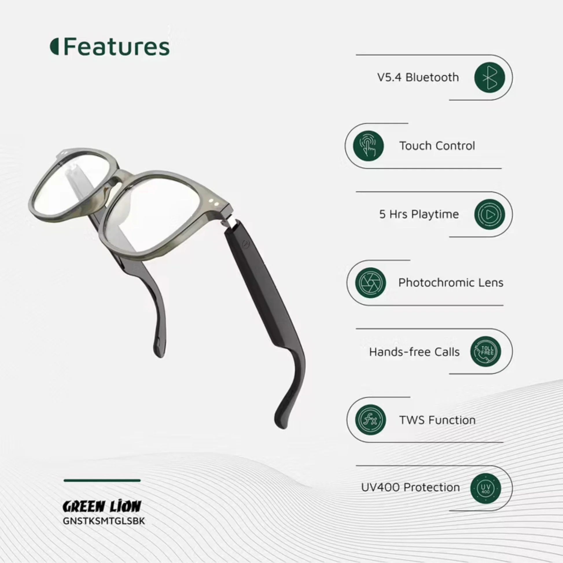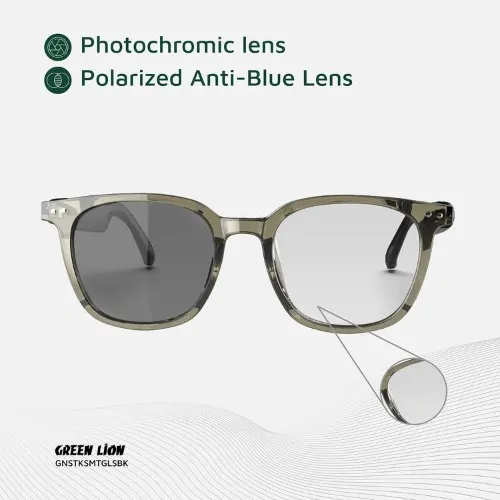 The Green Lion Stockholm Smart Glasses are the ultimate blend of style, eye protection, and technology. Designed with photochromic anti-blue lenses that adapt to sunlight while filtering harmful rays, they protect your eyes indoors and outdoors.