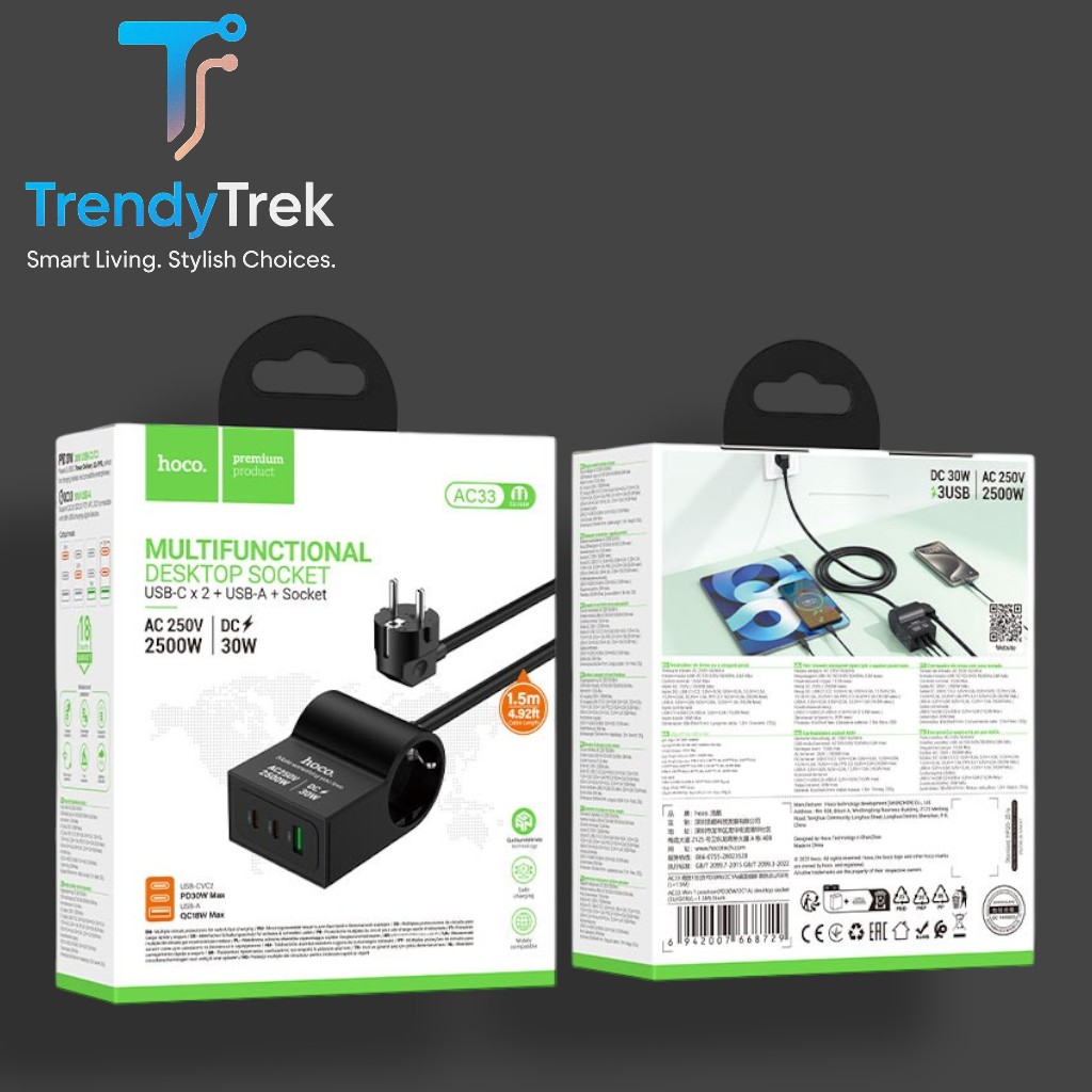 With its balanced mix of socket power, USB charging, and compact design, the Hoco AC33 is a smart everyday desktop charging solution for users who need convenience, compatibility, and a cleaner power setup in one device.
