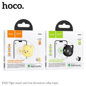 Keep track of what matters with the Hoco E91D Intelligent Positioning Anti-Lost Device Set, a compact smart tracker designed in a playful cat-shaped form that is especially suitable for pet collars while still being useful for bags, cases, and other personal items. It works with Apple’s Find My network, supports quick pairing without needing a separate third-party app, and is built in a lightweight ABS body for comfortable everyday use. The E91D is offered in black and yellow and is designed for users who want a practical tracker with a more distinctive, friendly look.