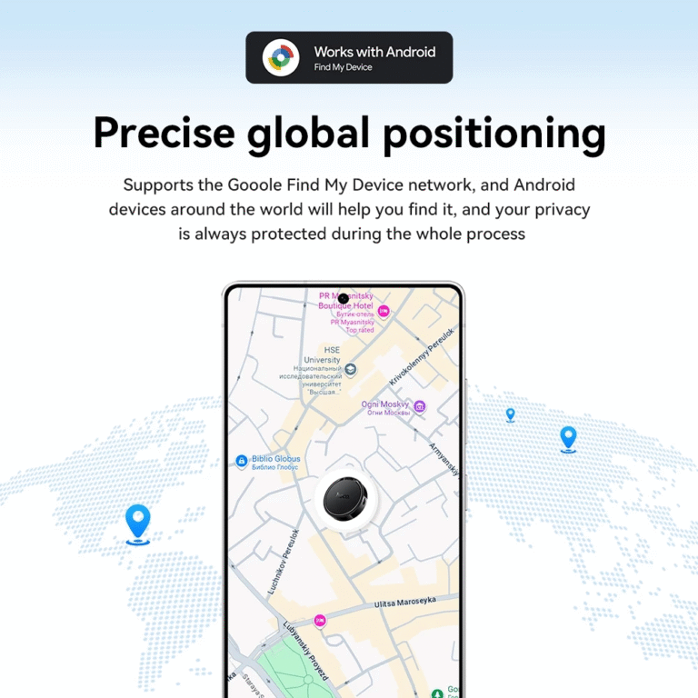 The device features global positioning through Google’s network, allowing you to locate items even when they are far away. Thanks to its integration with Android systems, you don’t need complex setups—just connect and start tracking using your phone.