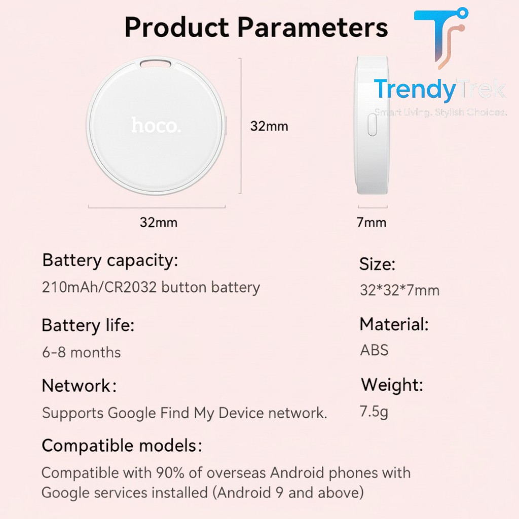 Privacy is also a key focus, with built-in protections that ensure your tracking data remains secure and under your control. Combined with its durable ABS construction and reliable performance, the Hoco E96A is a practical and efficient smart tracking solution for everyday use.
