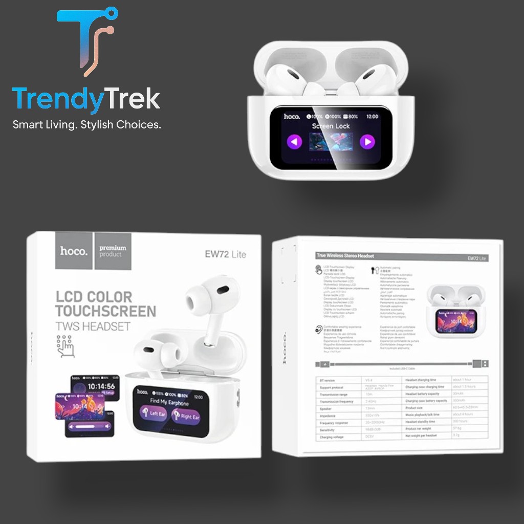 Experience advanced functionality and design with the Hoco EW72 Lite LCD Touchscreen TWS Headset, a premium wireless audio solution built for both tech lovers and everyday users. Featuring a colorful LCD touchscreen display on the charging case, this headset brings control and personalization to a whole new level.