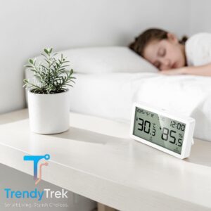 The Hoco HX42 5-in-1 High Precision Thermo-Hygrometer Alarm Clock is a practical everyday device designed to help you monitor indoor comfort more accurately. It combines time, alarm, temperature, humidity, date, and comfort tracking in one slim, easy-to-read unit, making it a smart addition to bedrooms, offices, nurseries, study rooms, and storage spaces. Its large LCD display and clean white design make it both functional and visually neat for daily use.