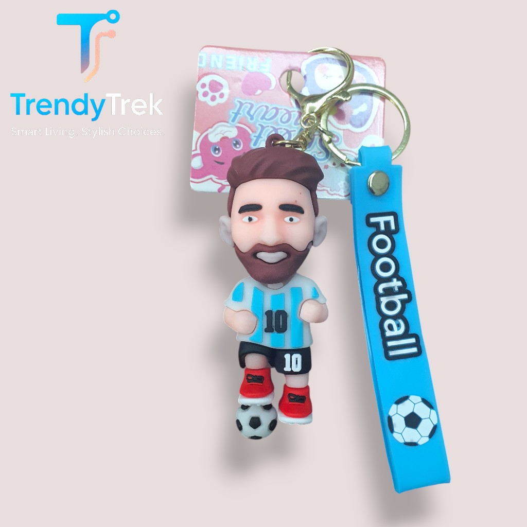 Carry a piece of football energy with you every day. This Messi-inspired keychain features a 3D player figure, a “Football” strap, and a mini football charm—lightweight, durable, and made for daily use.