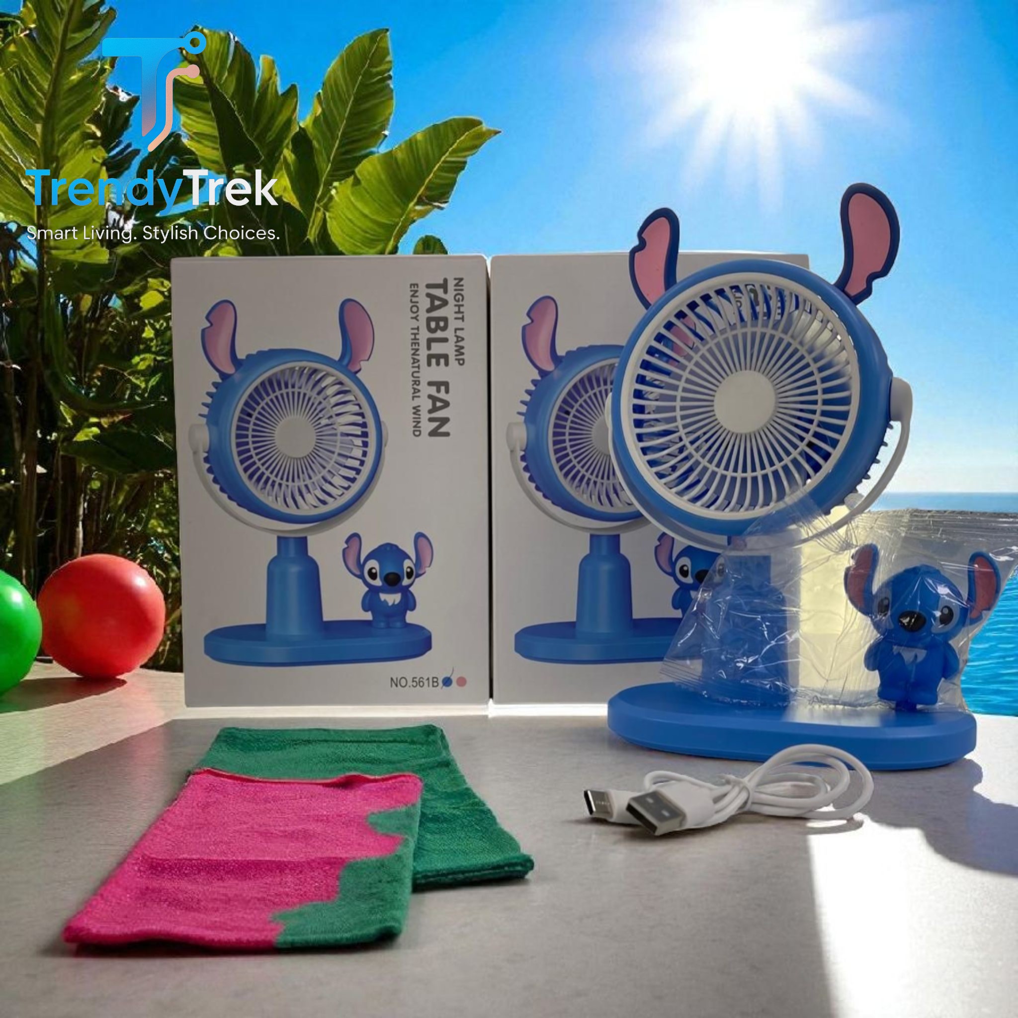 Stay cool and comforted with the Mini Table Fan with Night Lamp (NO.561B) — a compact and charming desk fan that combines effective airflow with soft ambient lighting. With a playful design and a built-in night lamp, it’s perfect for kids’ rooms, office desks, or bedside tables.