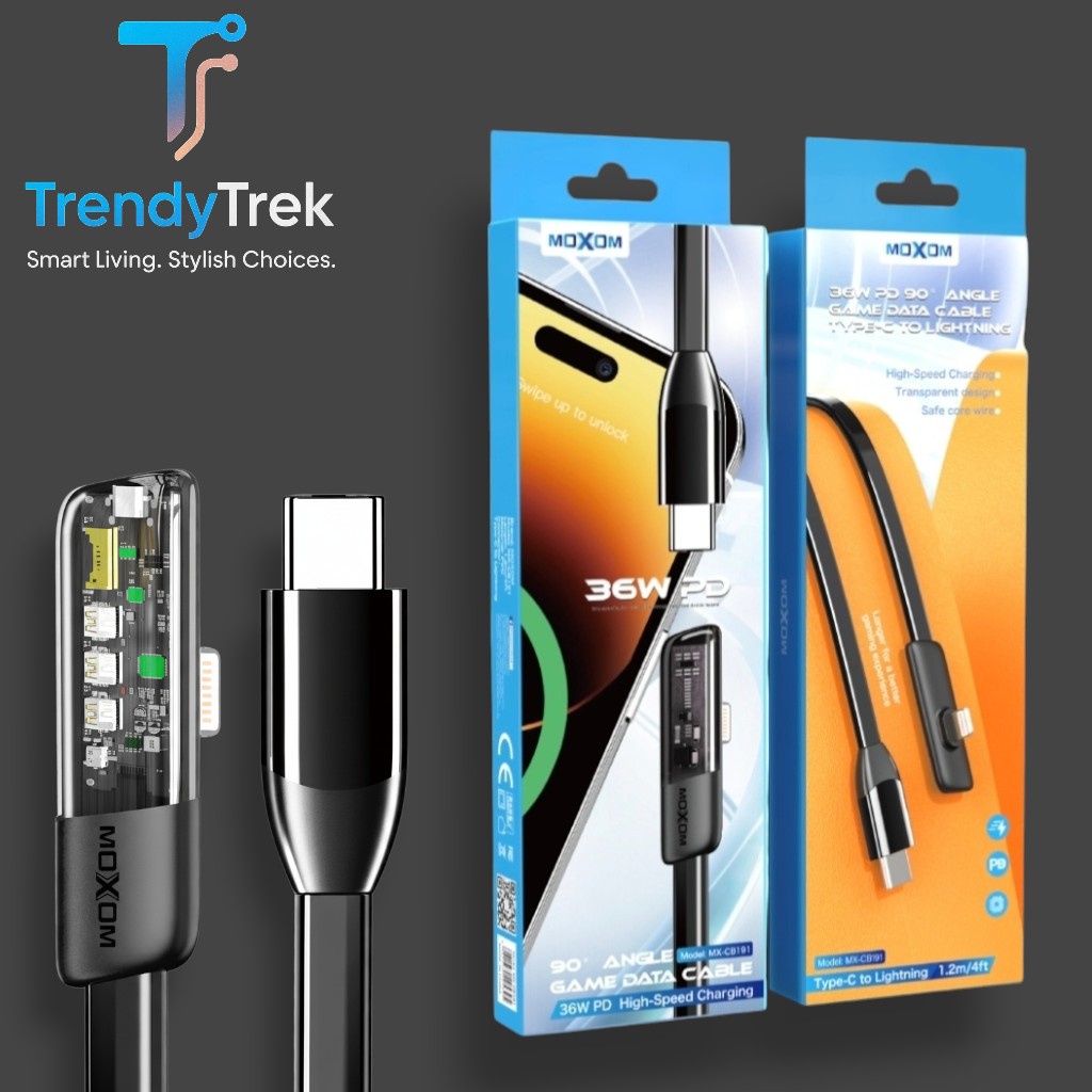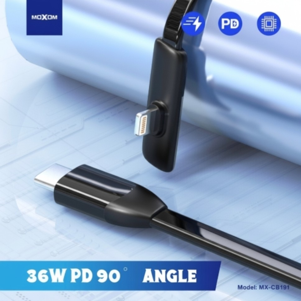 Designed for smooth gaming and everyday charging, the MOXOM MX-CB191 36W PD 90° Angle Game Data Cable (USB-C to Lightning) keeps your device powered without getting in your way. The 90° right-angle connector is made to reduce hand blockage while holding your phone horizontally, making it ideal for gaming sessions, streaming, or scrolling while charging.