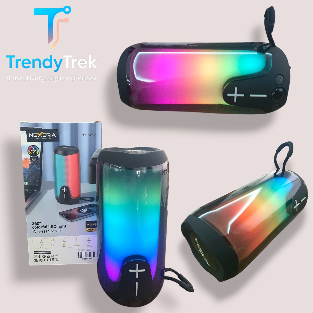 The NEXERA NX-SP03 360° Colorful LED Wireless Speaker is designed to deliver high-quality sound combined with an eye-catching visual experience. Built with modern audio technology and refined design, this speaker is ideal for everyday use at home, in the office, or on the go.
