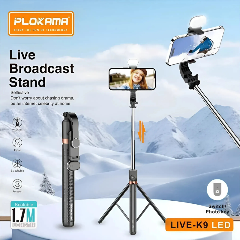 1× Plokama LIVE-K9 LED Selfie Stick Tripod