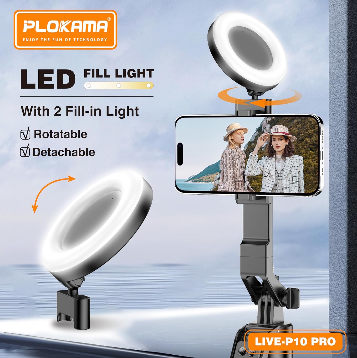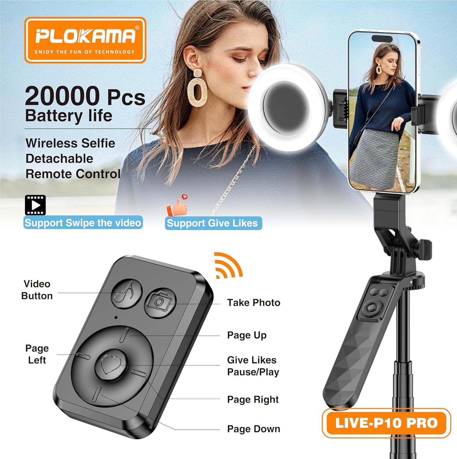 Upgrade your filming setup instantly with the Plokama LIVE-P10 Pro—a portable 180cm selfie stick tripod designed for creators, travelers, and anyone who wants steady, professional-looking shots. With an integrated LED fill light and a Bluetooth remote, you can capture content confidently—anytime, anywhere.