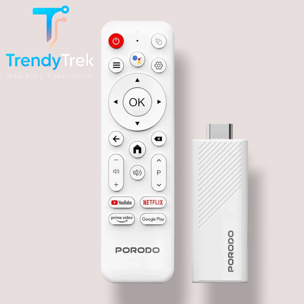 Whether you’re upgrading an old TV or looking for a compact streaming solution on the go, the Porodo 4K Android TV Stick gives you powerful performance, smart control, and endless entertainment in one sleek device — making every screen smarter instantly.