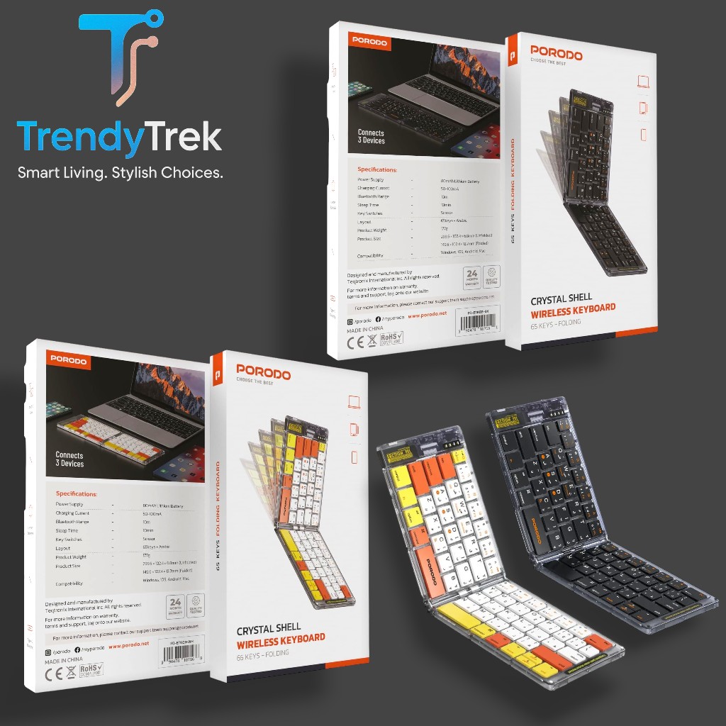 Compact, stylish, and versatile, the Porodo Crystal Shell Keyboard is a smart solution for productivity on the go.