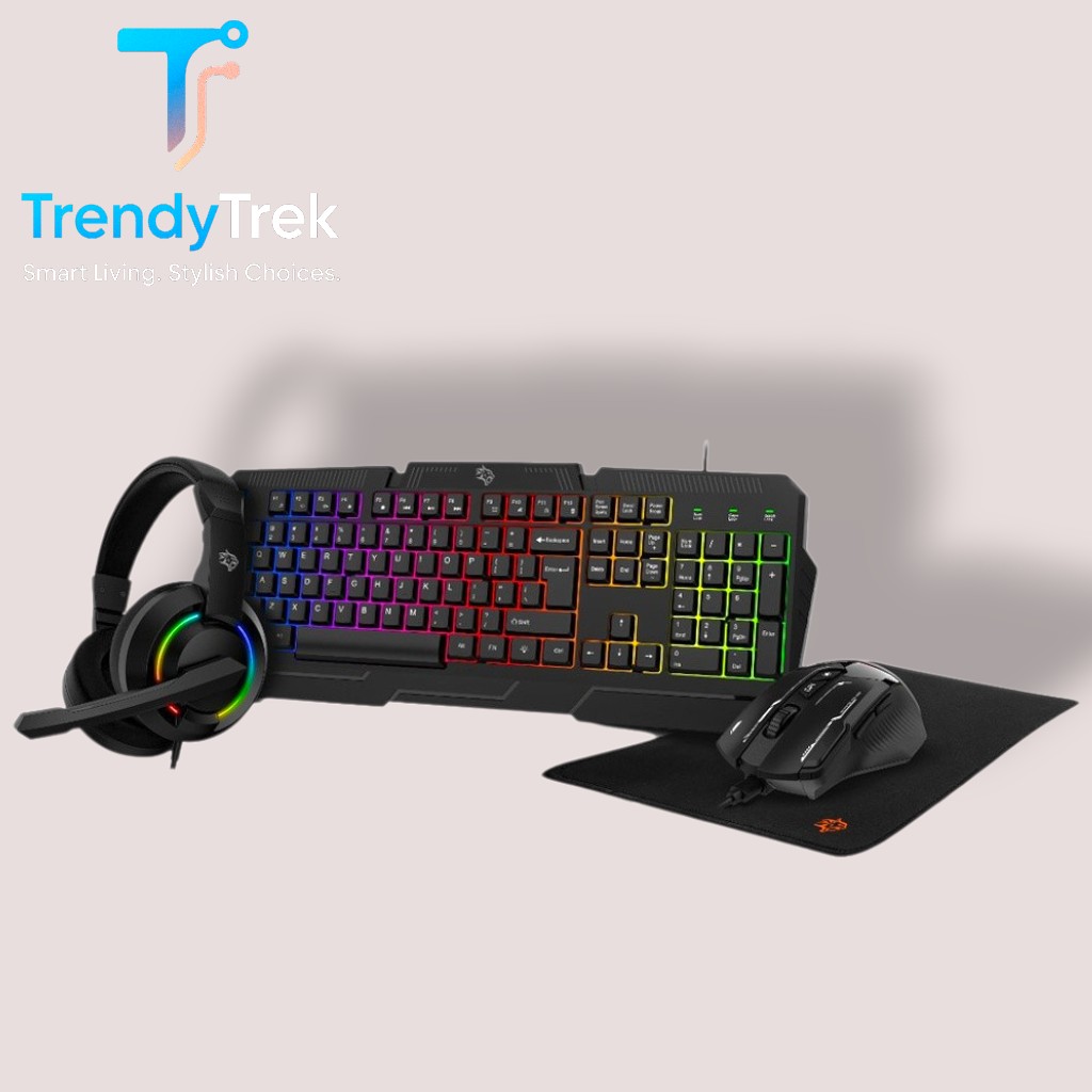 Complete 4-in-1 bundle: Keyboard, Mouse, Headset, and Mouse Pad