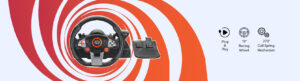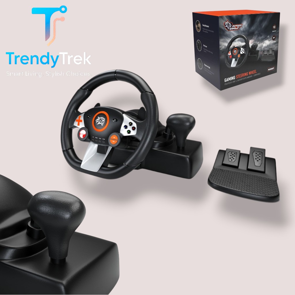 Bring the thrill of the racetrack to your living room with the Porodo Gaming 7in1 Steering Wheel (PDX627). Designed for an immersive driving experience, this steering wheel features a 270° coil-spring mechanism, a responsive pedal system, a gear lever, and a 10-inch wheel for realistic control.