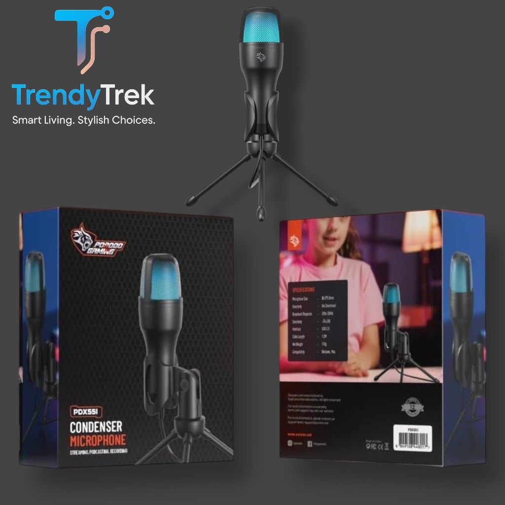 Achieve professional-level audio for podcasts, streaming, gaming, and online meetings with the Porodo Gaming Condenser Microphone (PDX551).