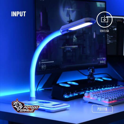 Designed for gamers who value functionality and aesthetics, the Porodo E-Sports Desk Lamp enhances your desk while providing convenience through its charging features.