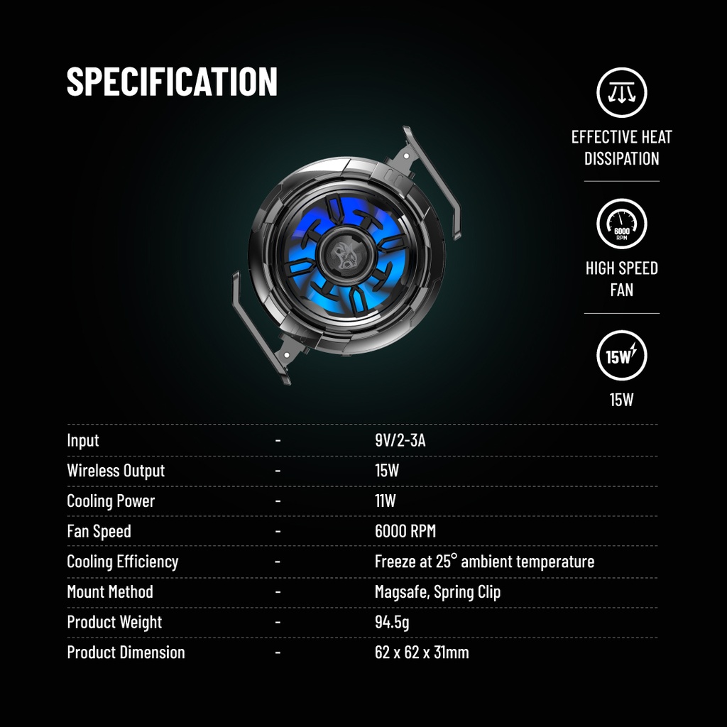 The built-in 15W wireless charging is fully MagSafe-compatible, providing hassle-free, cable-free charging for supported devices. With flexible mounting options — including MagSafe attachment and a spring clamp — it’s designed for convenience and portability, making it an ideal tool for mobile gamers.