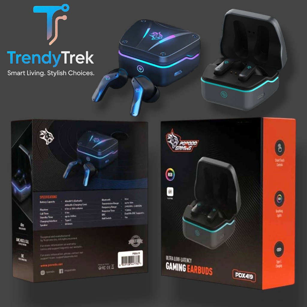 Step into the world of immersive gameplay with the Porodo Gaming Ultra Low-Latency Gaming Earbuds (PDX419) — designed for gamers who demand fast response, clear communication, and an engaging RGB style. Engineered with ENC Dual Mic Support and 60ms ultra-low latency, these earbuds ensure seamless synchronization between audio and visuals, making them ideal for competitive mobile or PC gaming.