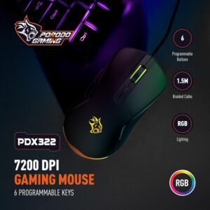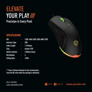 Enjoy vibrant RGB backlighting with adjustable colors to match your gaming setup, and customize your controls with programmable keys through Porodo’s macro software. With switches rated for 3 million clicks, this mouse is built to withstand heavy use while keeping your performance sharp.