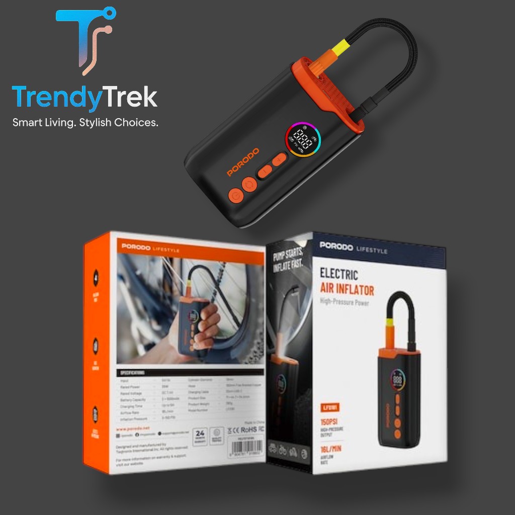 Fast, compact, and built to perform, the Porodo Electric Air Inflator gives you instant inflation wherever you go — perfect for emergencies, travel, sports, and daily use. With powerful pressure, smart detection, and a durable design, it’s the tool you’ll always want in your car or backpack.